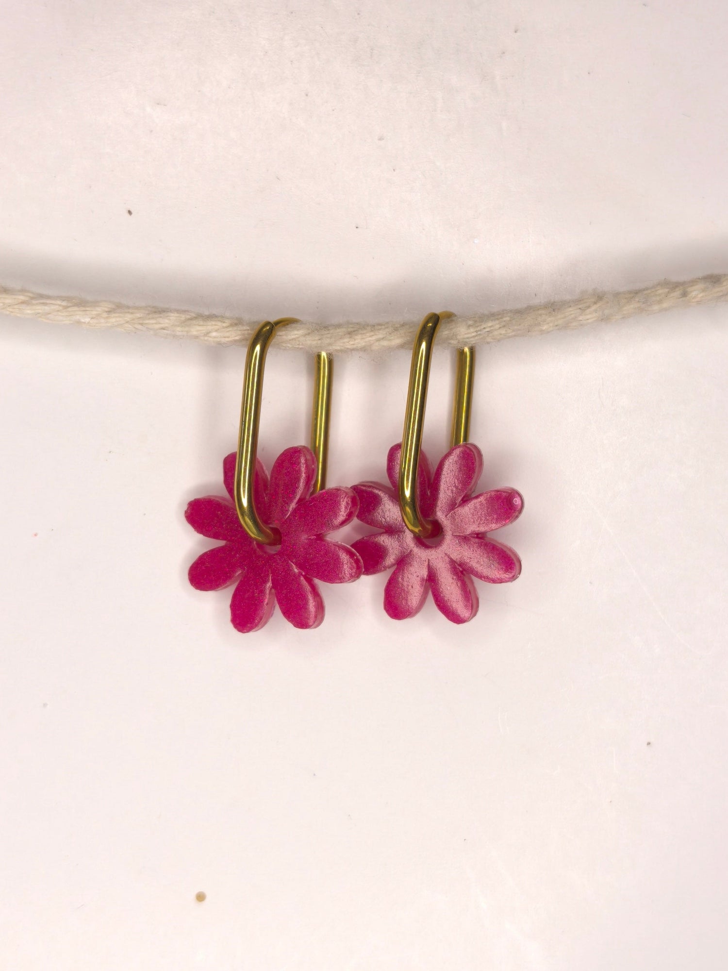 Chaque bijou en forme de marguerite est façonné à la main en résine, puis sublimé de couleurs délicates, de paillettes scintillantes ou de reflets irisés, pour capturer l’innocence et la fraîcheur d’un champ fleuri au cœur du Pays Basque.
