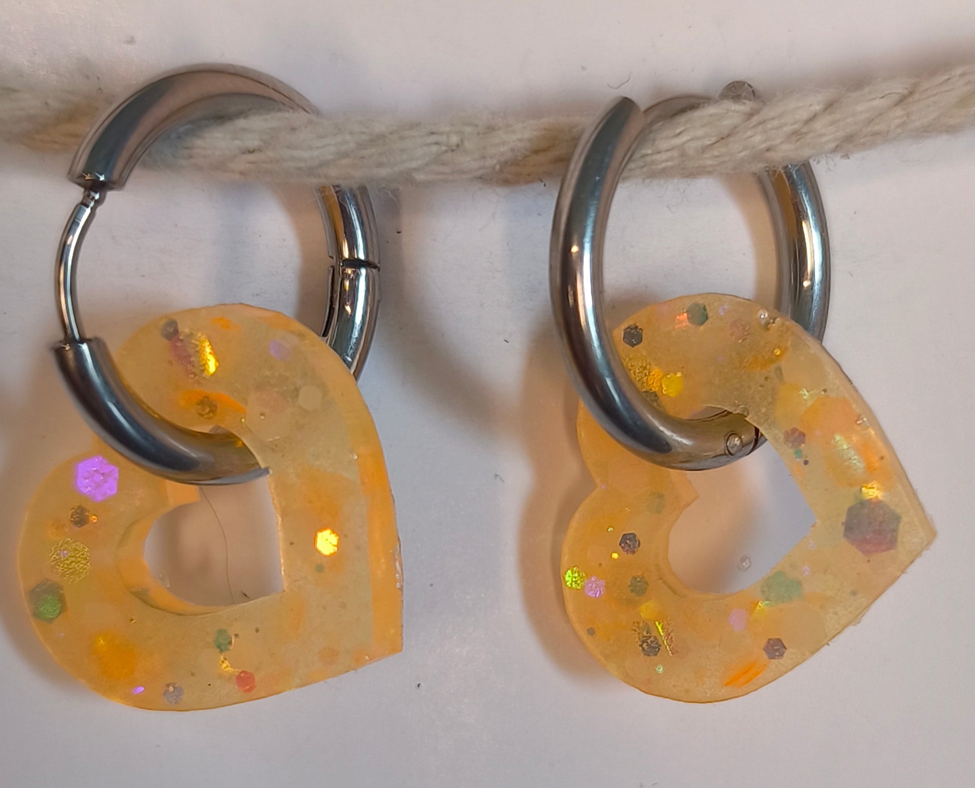Un cœur orange phosphorescent à paillettes, symbole de tendresse et d’amour infini.