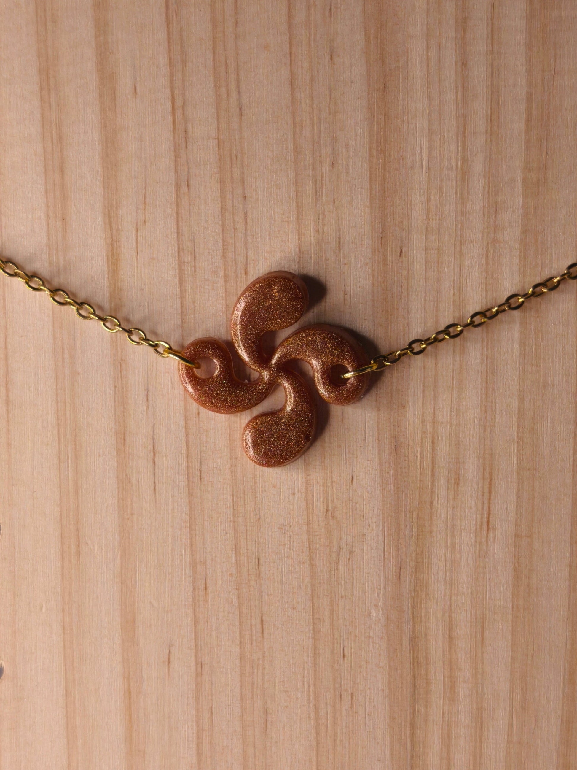 Un bracelet, où la Croix Basque cuivrée capte la lumière et habille le poignet avec chaleur.
