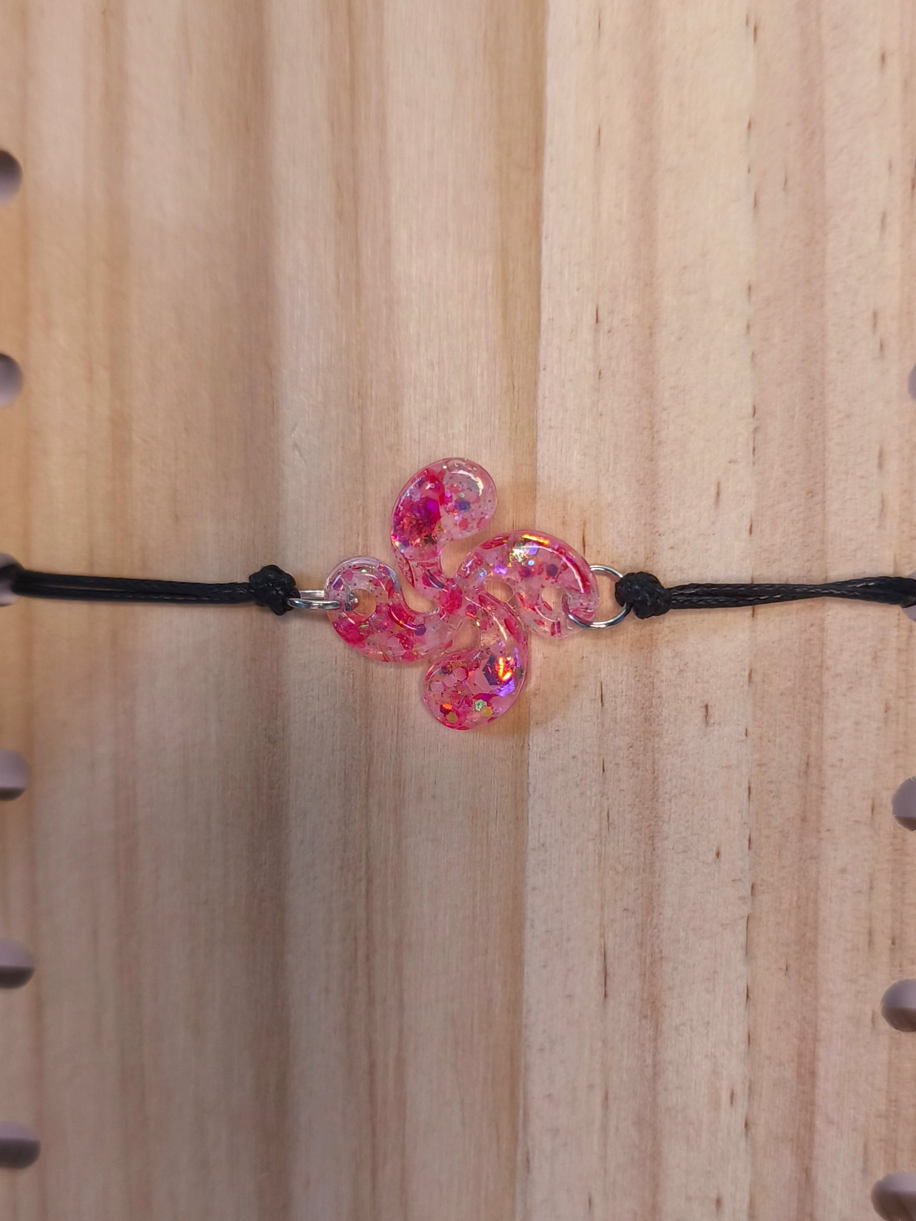 Un bracelet aux paillettes rose-rouge phosphorescentes qui habille le poignet d’une touche lumineuse et pétillante, comme un rayon de lumière à Anhaux
