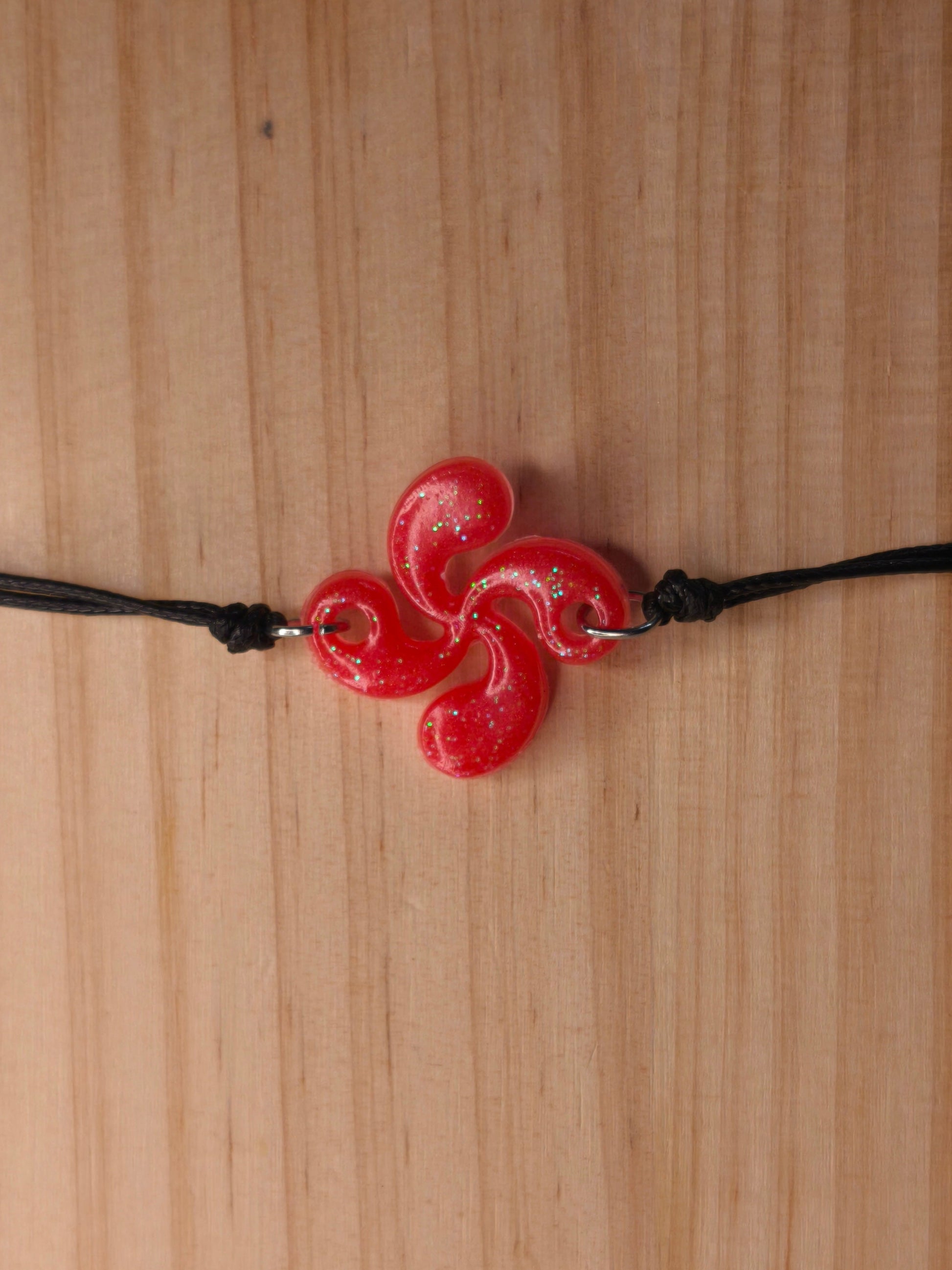 Un bracelet rouge à paillettes qui enrobe le poignet d’une touche de lumière et de vitalité, comme un rayon de soleil sur les ruelles de Mauléon-Licharre