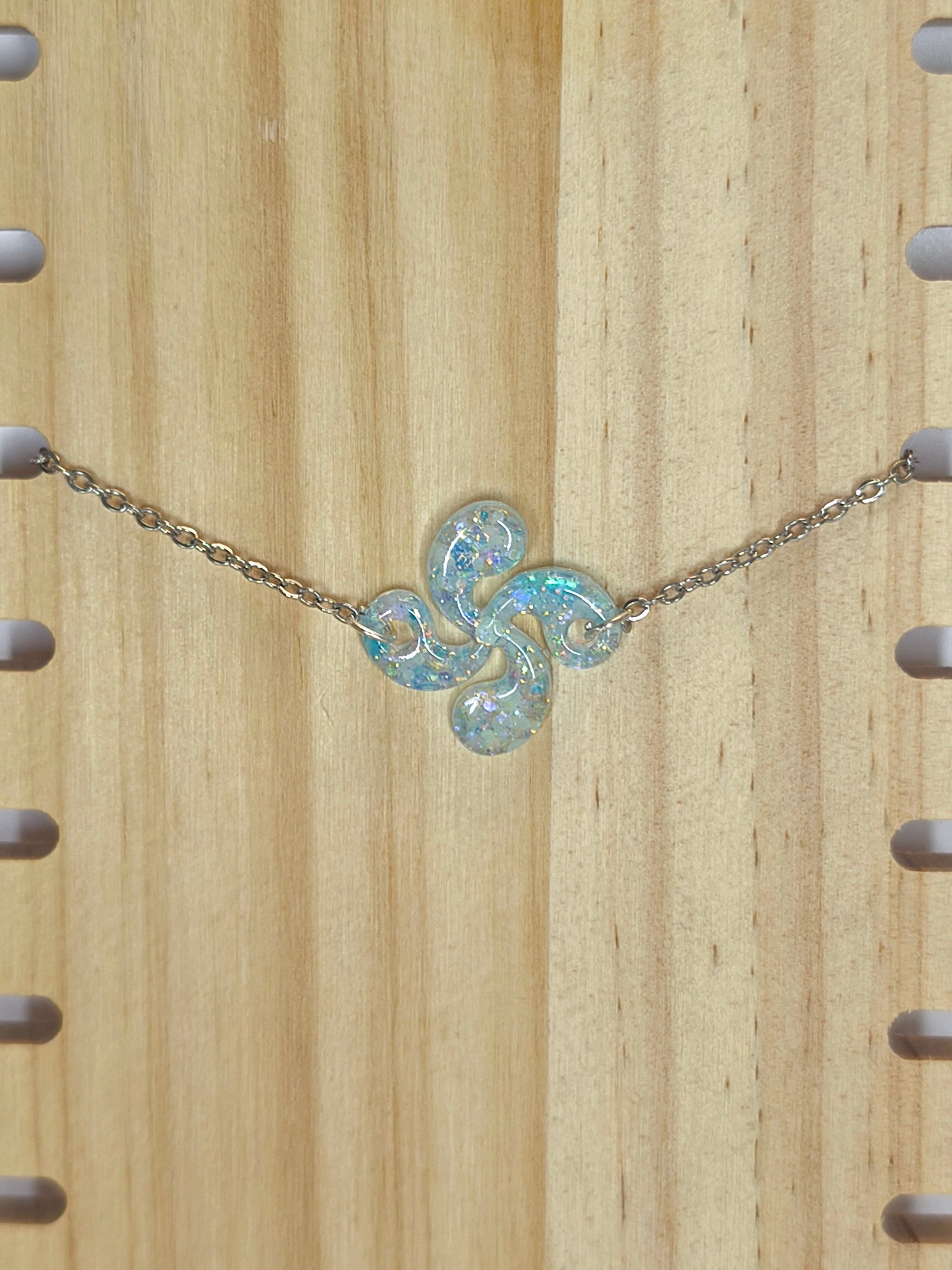 Un bracelet bleu clair phosphorescent, léger et élégant, comme un souffle de brise sur les collines basques