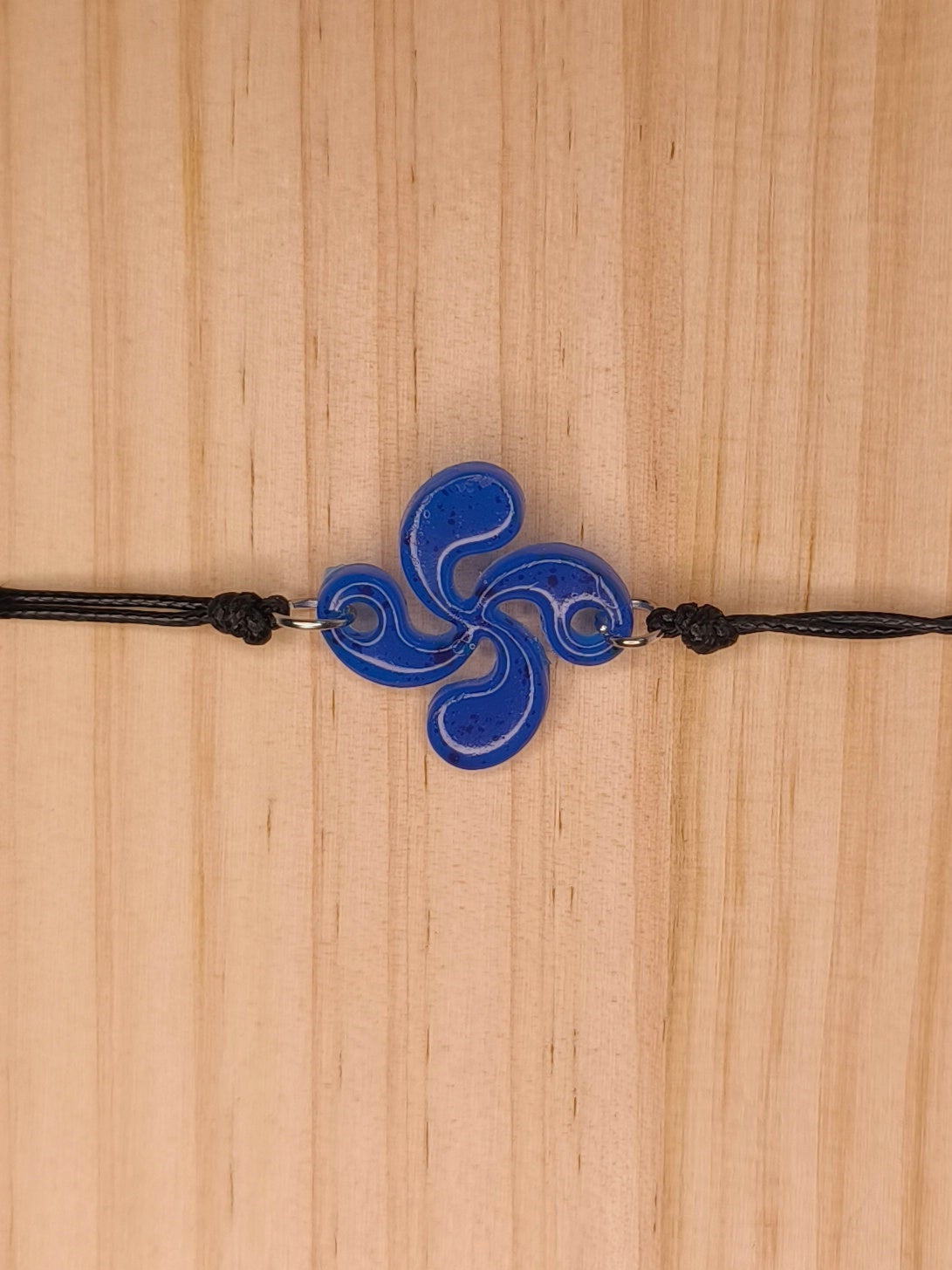 En bracelet, la croix basque néon bleu pulse comme une étincelle d’énergie au poignet
