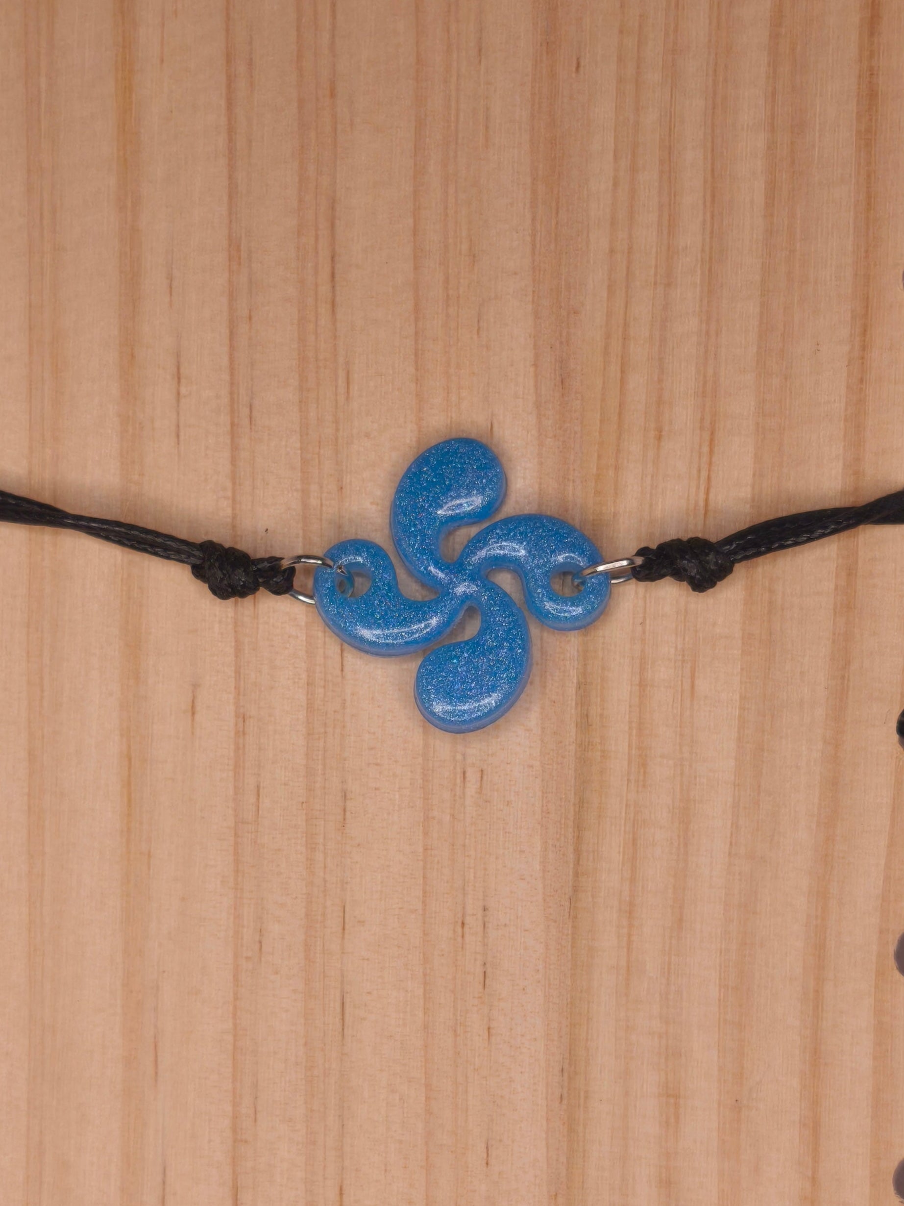 Le bracelet orné d’une croix en bleu irisé brille discrètement, élégant et intemporel