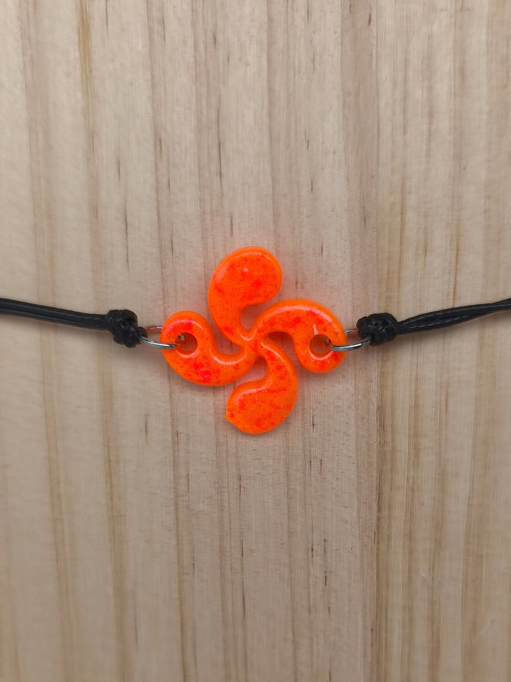 Le bracelet avec croix basque en orange néon foncé habille le poignet d’une touche dynamique et originale