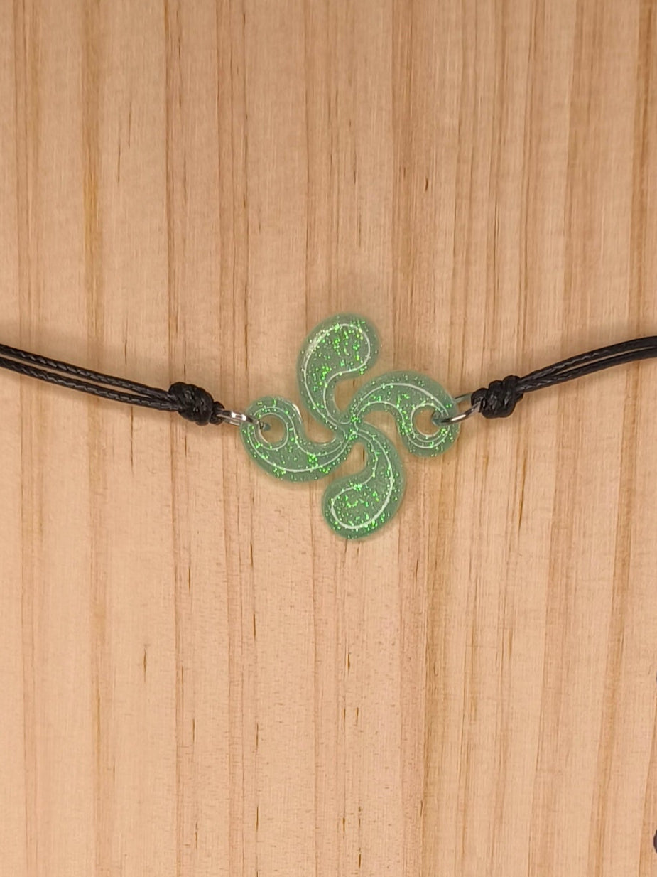 Le bracelet avec croix basque en vert à paillettes fines habille le poignet d’une note raffinée et scintillante