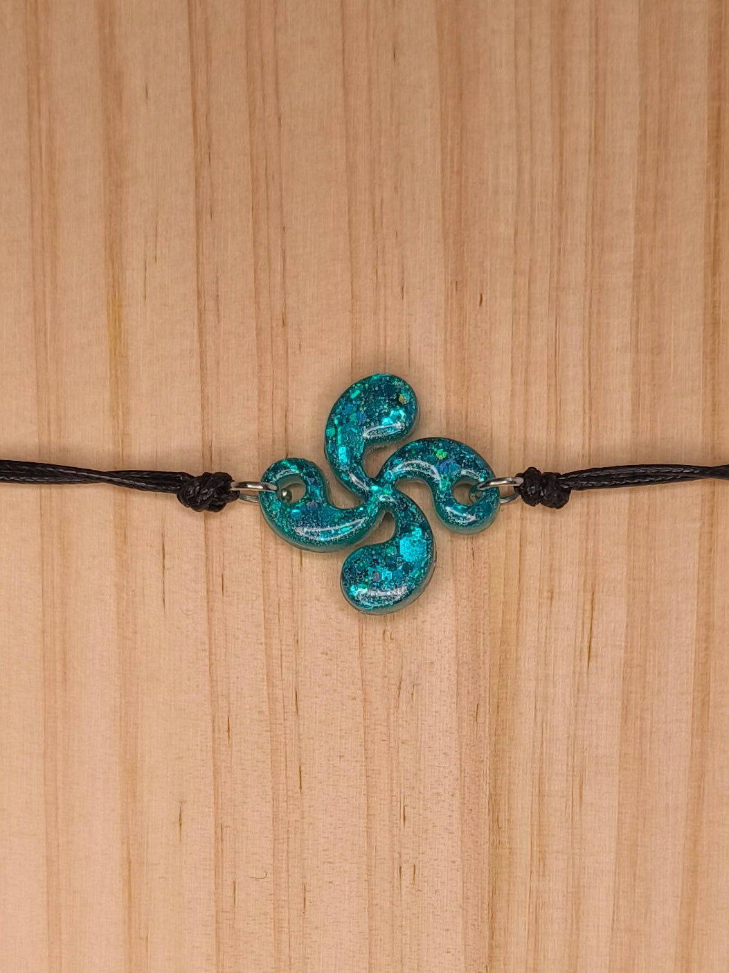 Le bracelet avec croix basque en turquoise à paillettes habille le poignet d’une note solaire et raffinée.