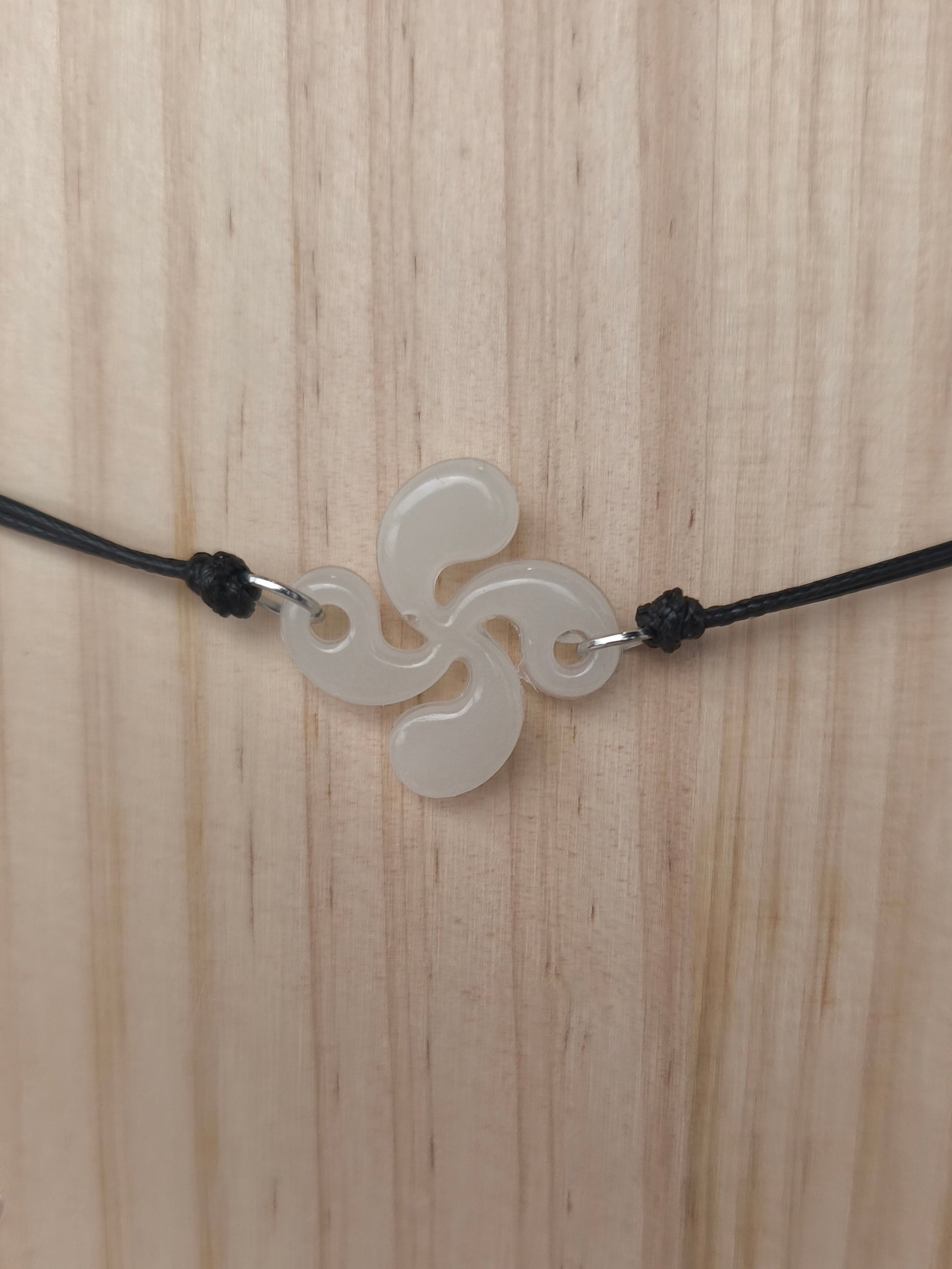 Le bracelet avec croix basque blanche phosphorescente habille le poignet d’une touche lumineuse et poétique