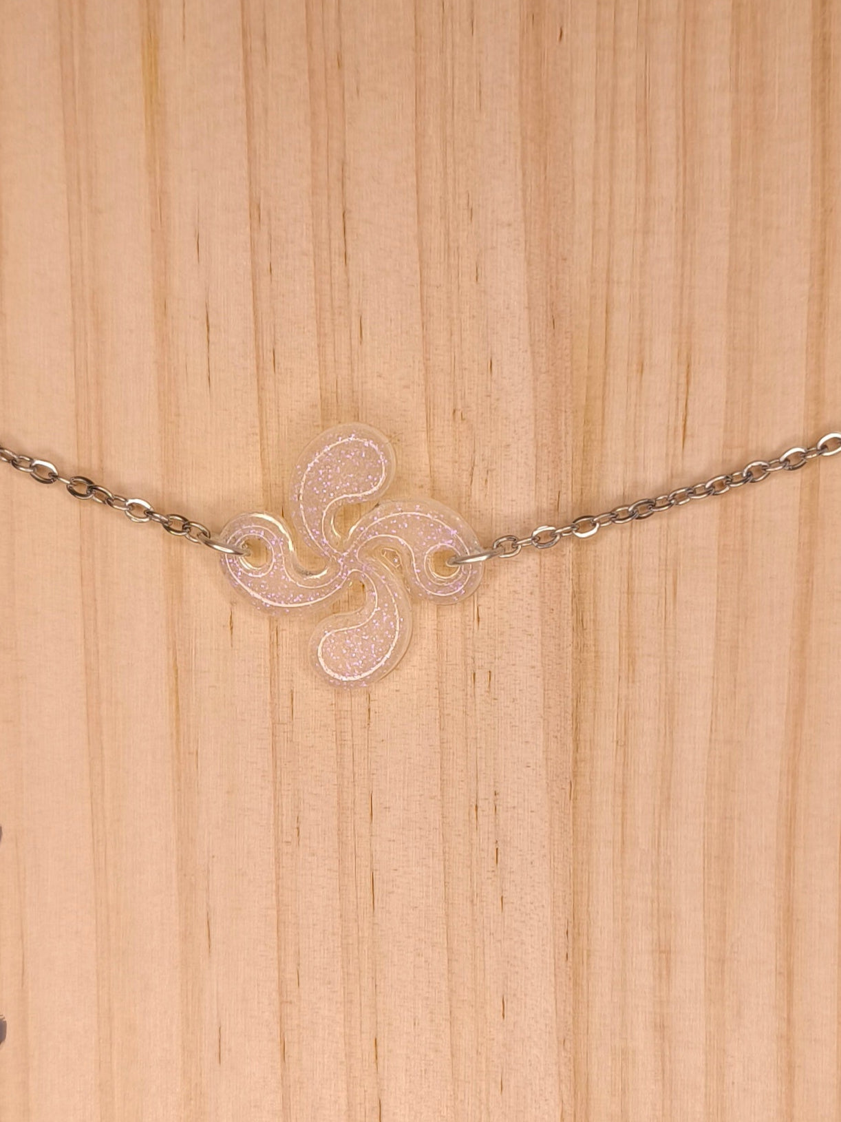 Le bracelet avec croix basque blanc finement pailleté habille le poignet d’une note raffinée et lumineuse