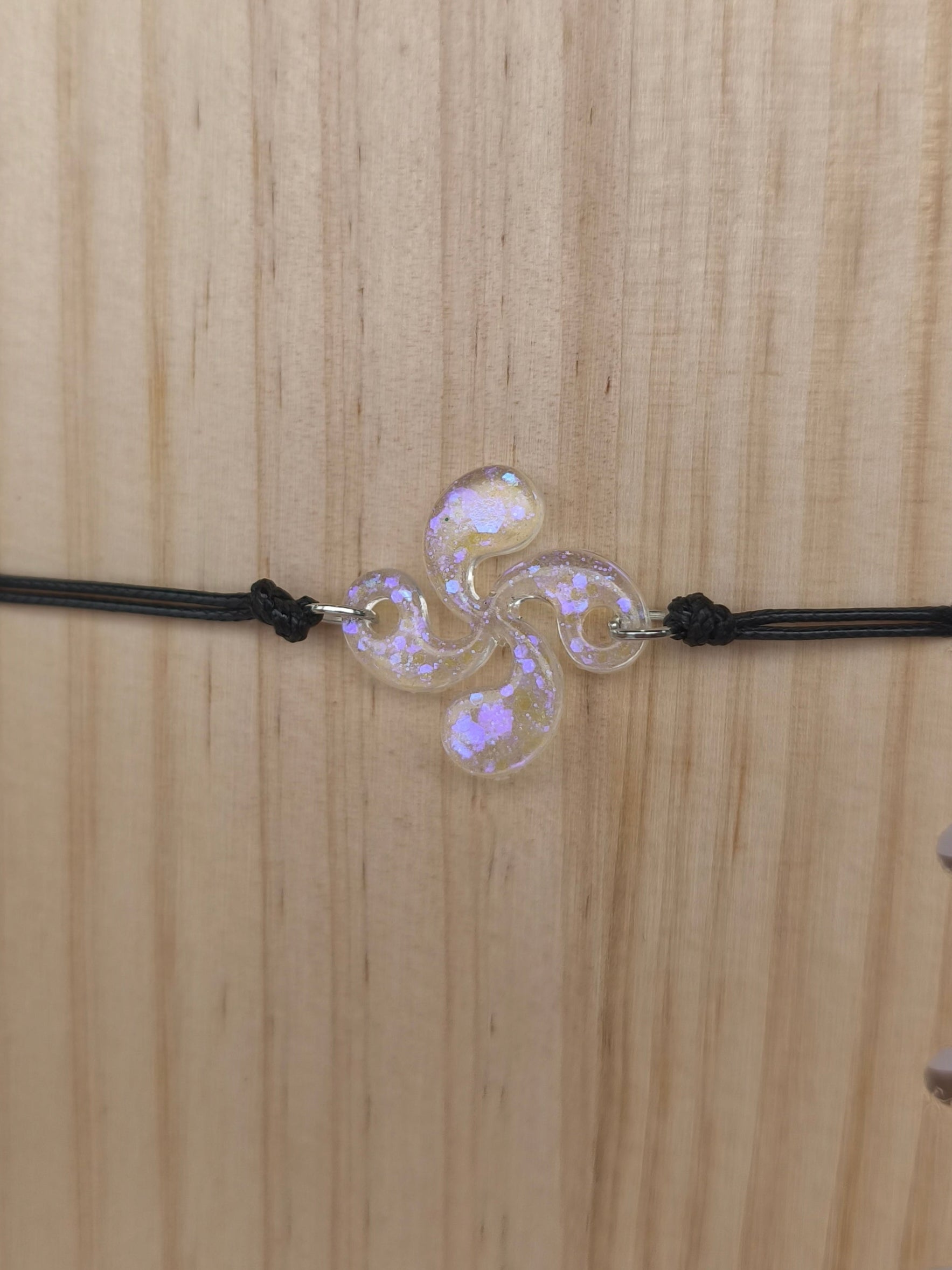 Le bracelet avec croix basque transparente à paillettes illumine le poignet avec légèreté