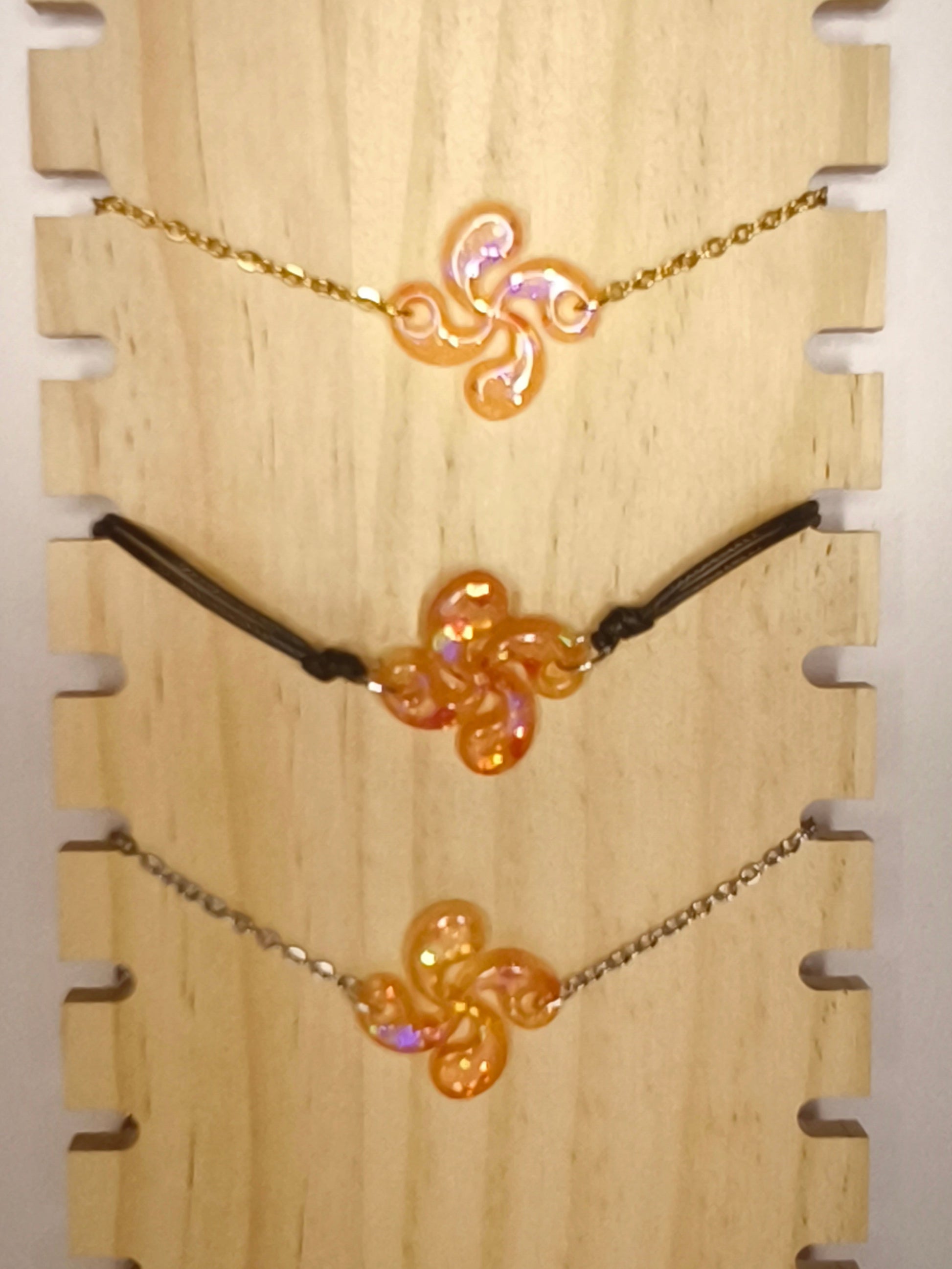 La Croix Basque orange foncé pailletée habille le poignet avec subtilité et éclat, pour un style raffiné et lumineux