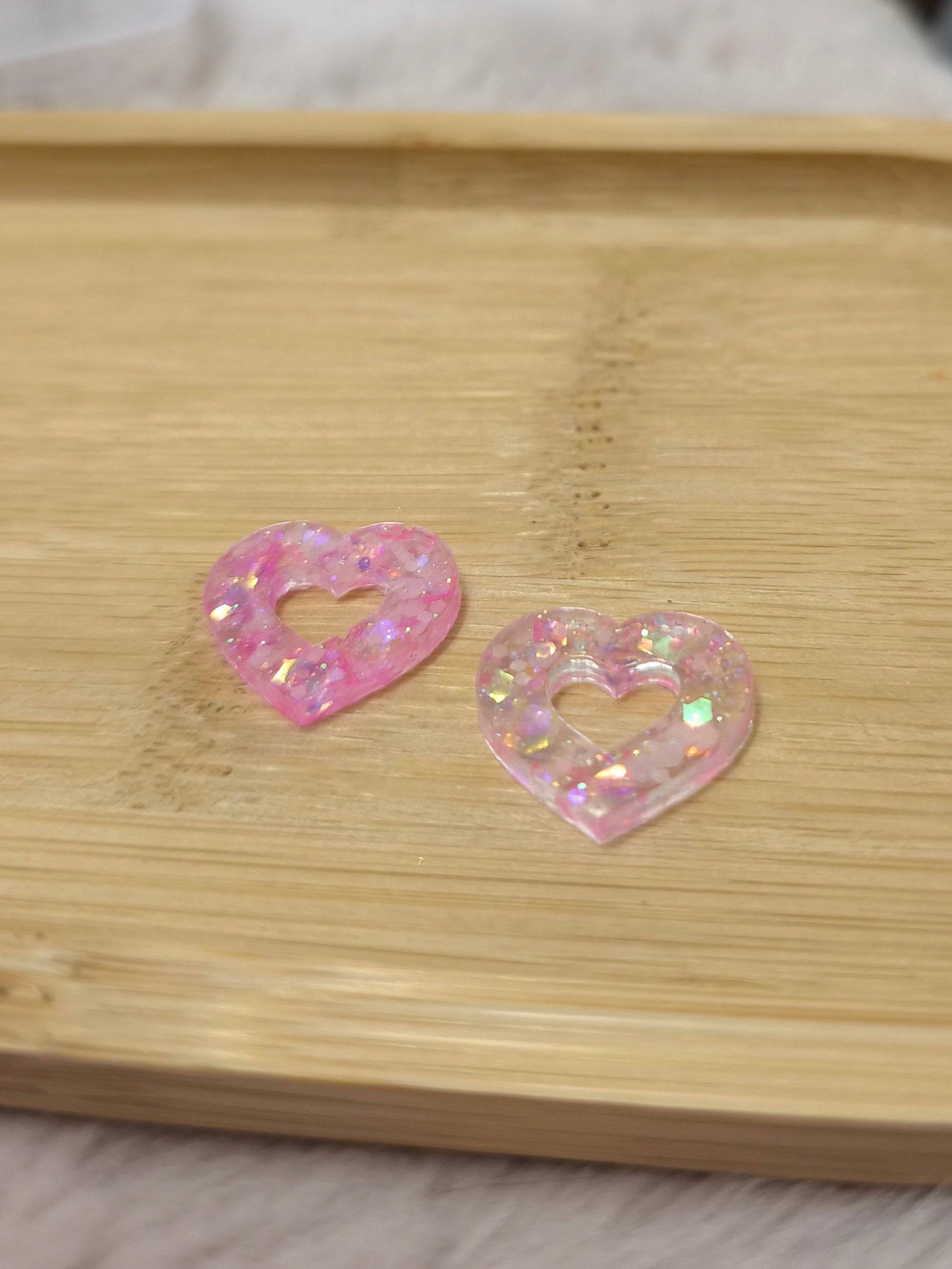 Un cœur transparent parsemé de paillettes rose phosphorescentes qui respire douceur et éclat.