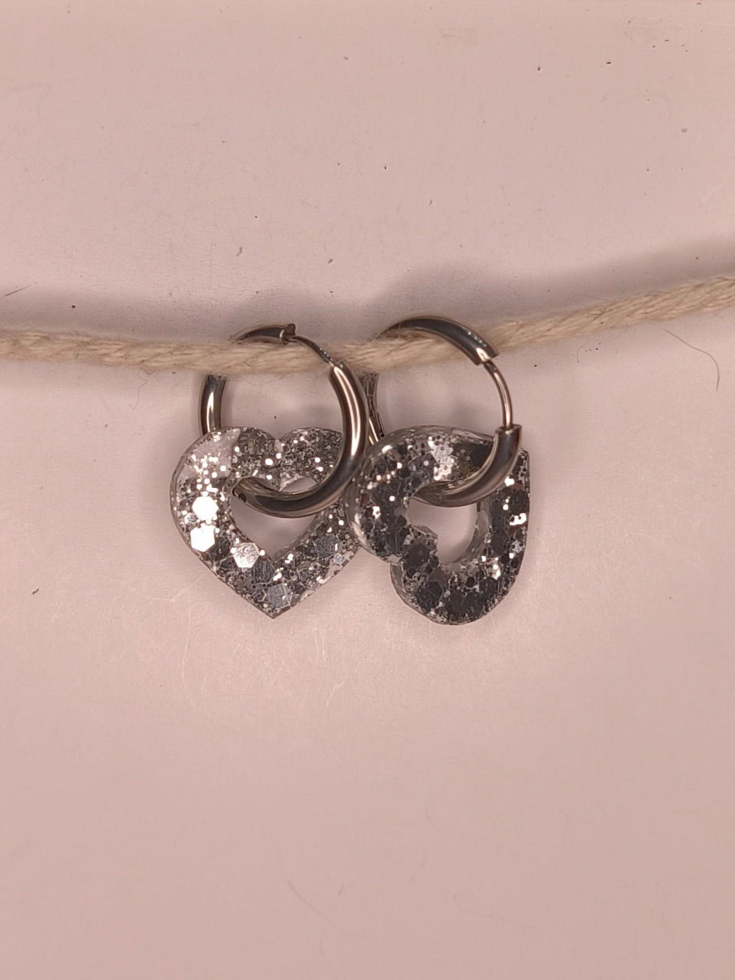 Un cœur argenté qui brille avec tendresse et délicatesse à chaque mouvement.
