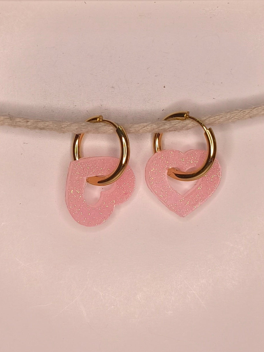 Un cœur parsemé de paillettes roses pâles qui respire tendresse et douceur