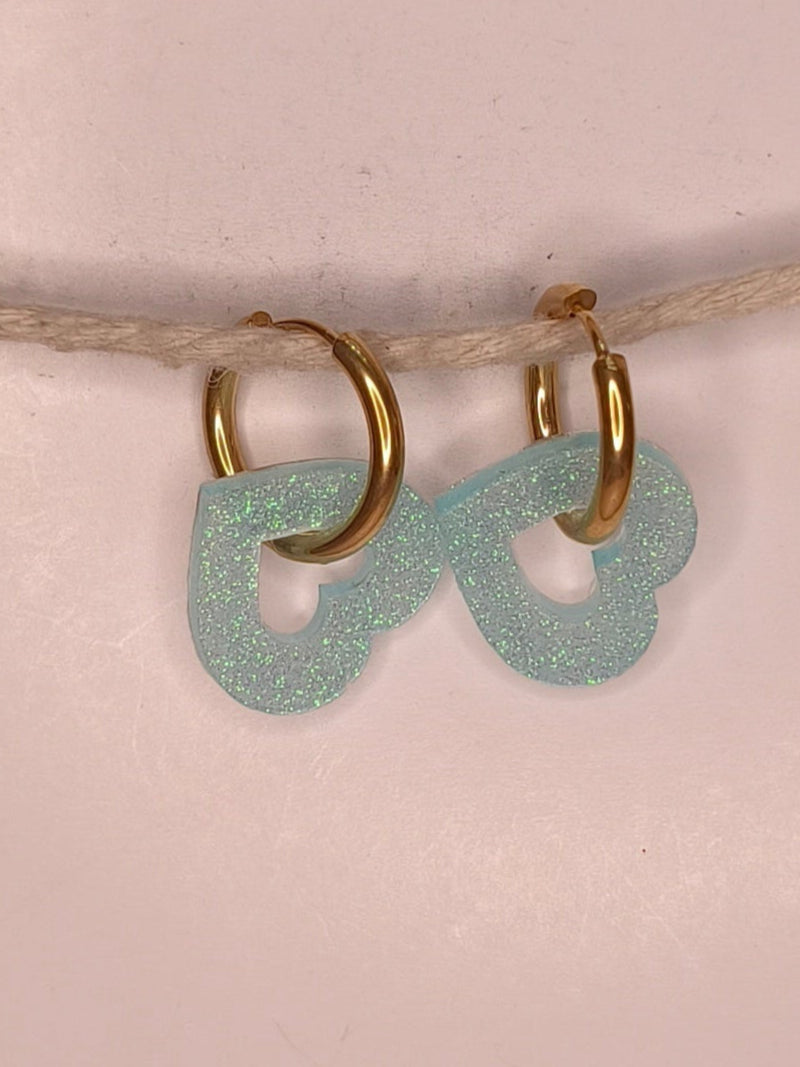 Un cœur turquoise aux paillettes fines, symbole de tendresse et de vivacité