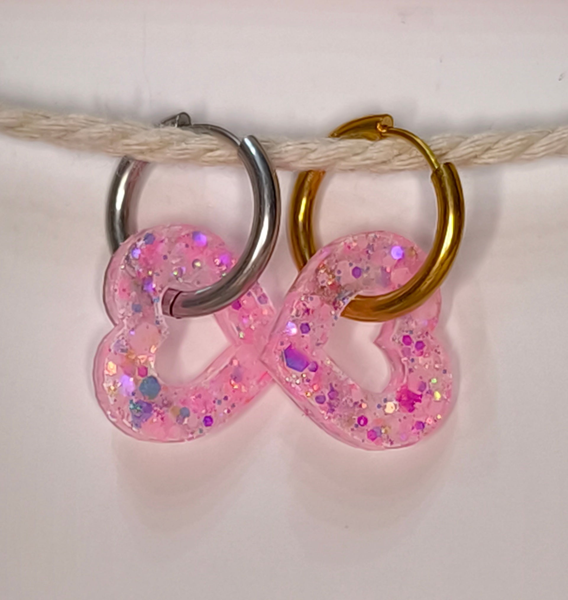 Un cœur transparent avec paillettes luminescentes roses qui respire tendresse et légèreté