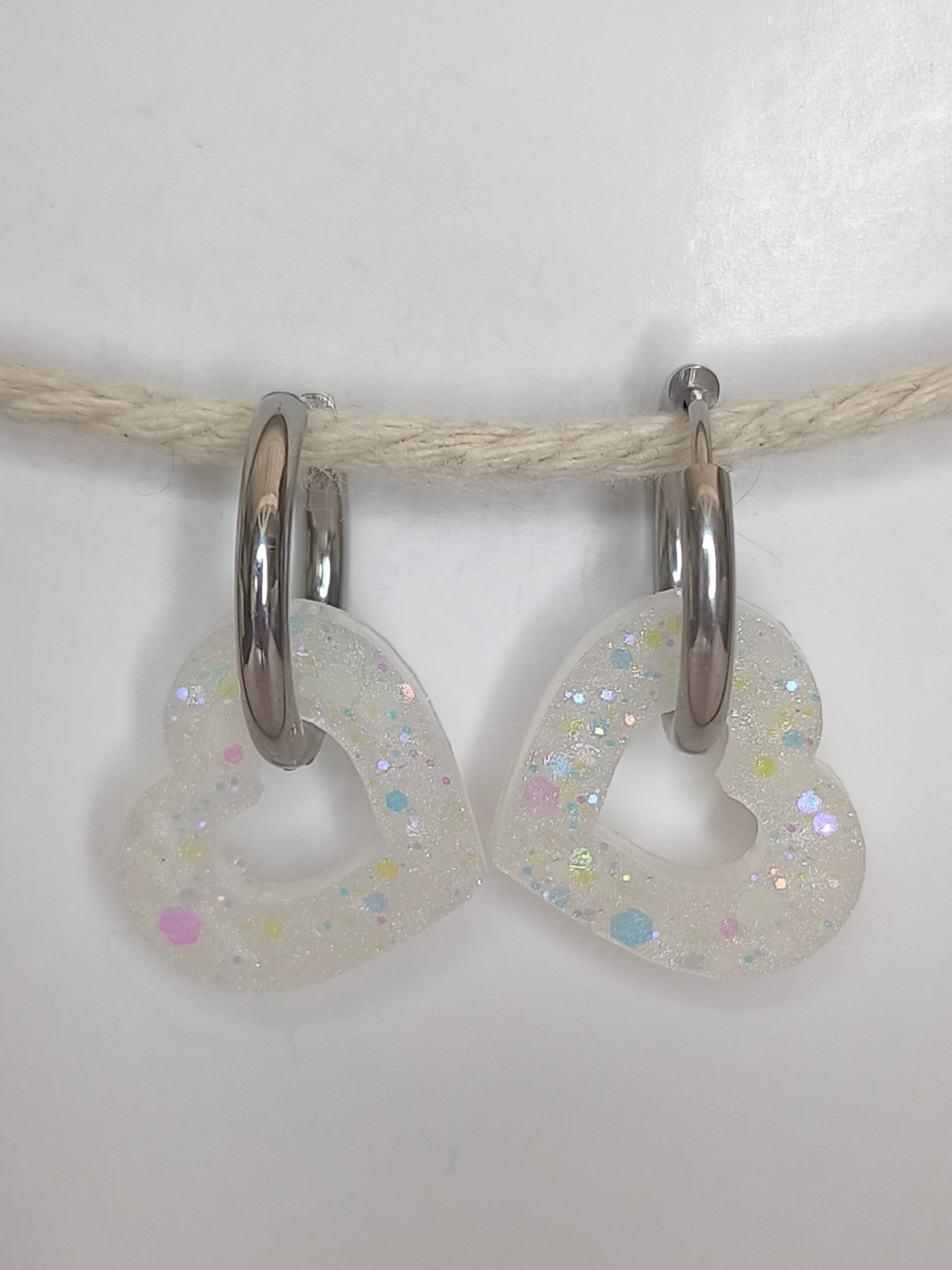 Les cœurs blancs à paillettes irisées symbolisent pureté et tendresse