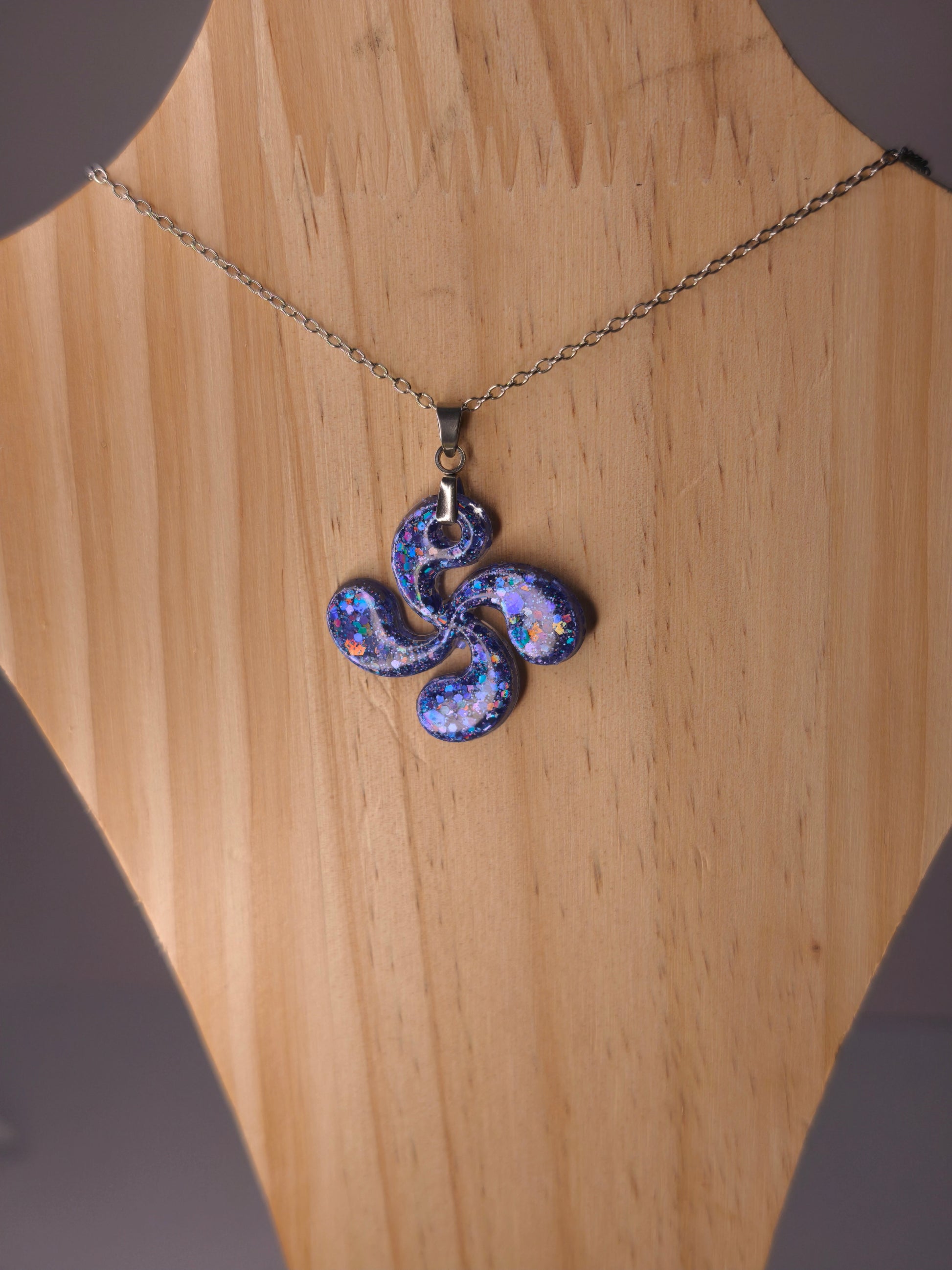 Porté près du cœur, le pendentif bleu foncé pailleté révèle toute la profondeur et la lumière de la Soule