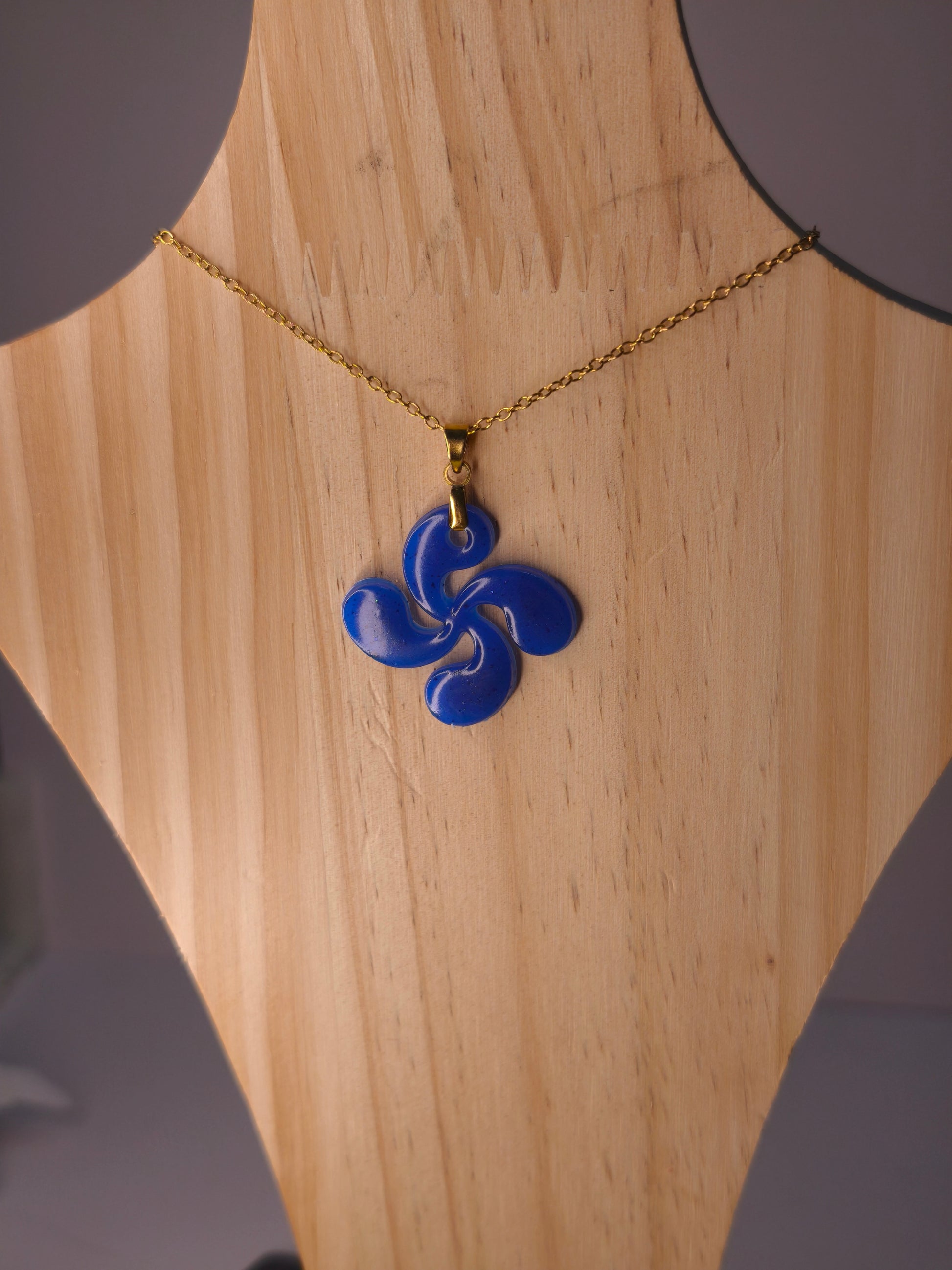 Porté près du cœur, le pendentif néon bleu reflète toute la force lumineuse de Bayonne