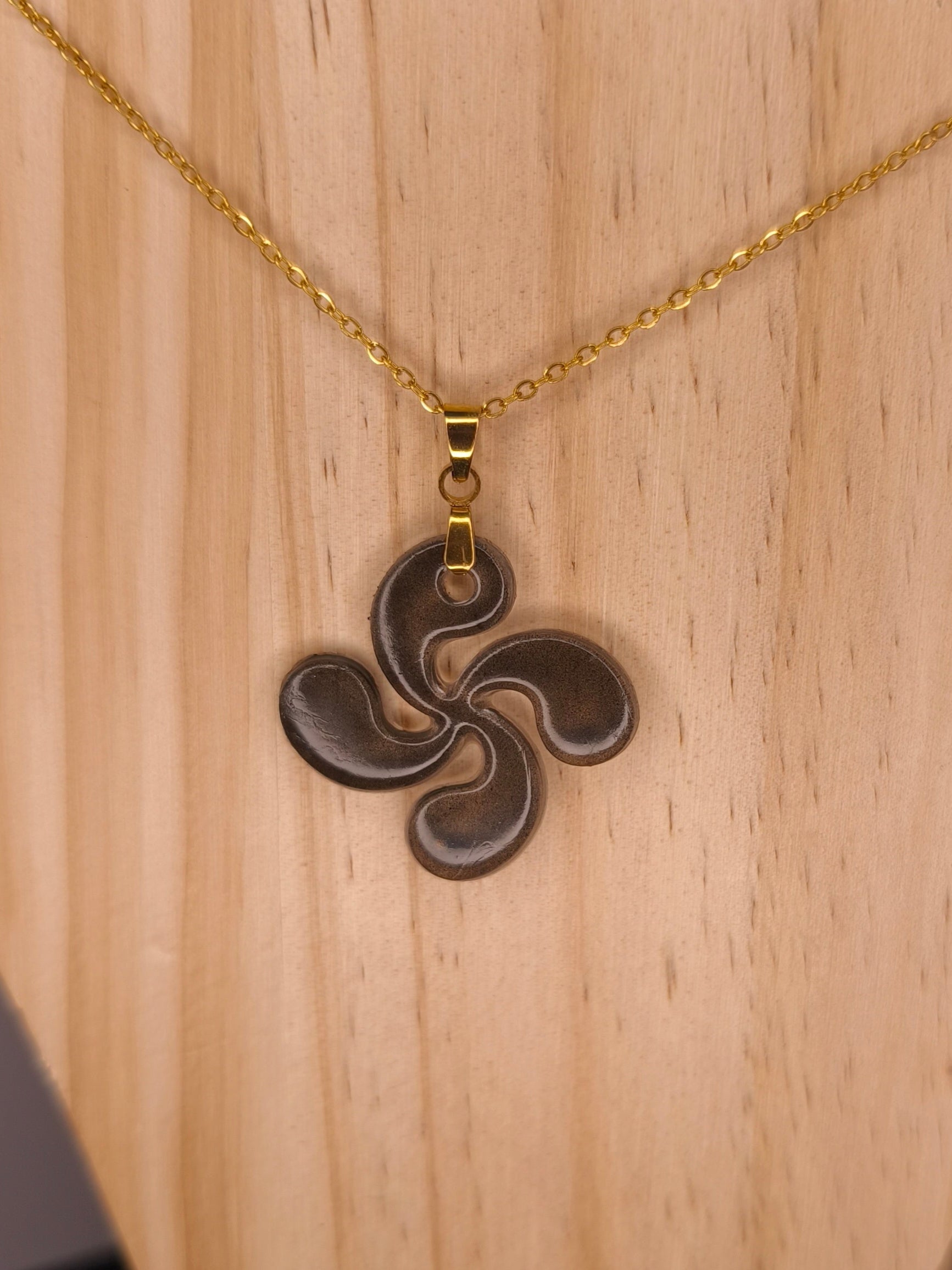Le pendentif croix basque en noir sublime le port de tête d’une note intemporelle et raffinée