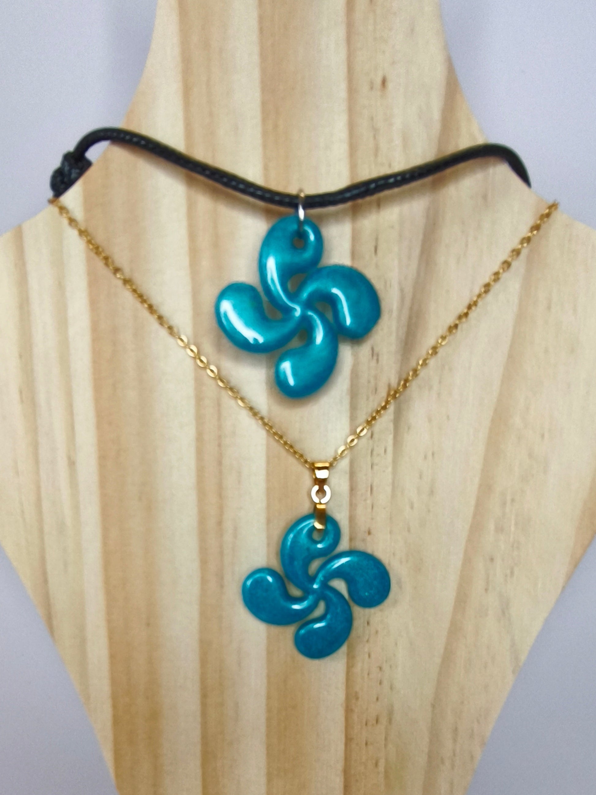 Un collier turquoise qui suspend la Croix Basque près du cœur, pour porter avec soi la légèreté et la poésie d’Espès-Undurein
