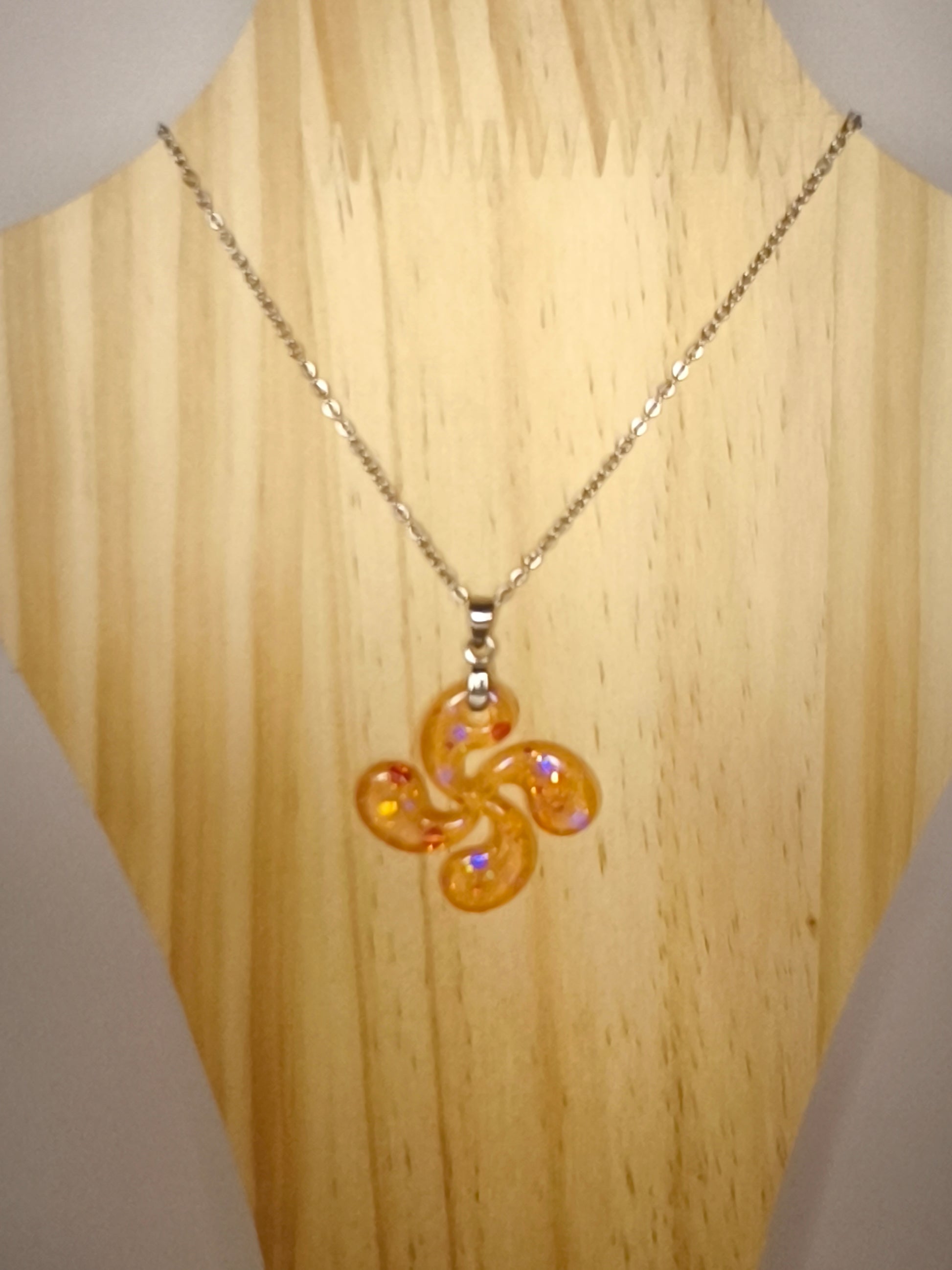 La Croix Basque orange foncé pailletée capte la lumière et apporte éclat et élégance à votre style