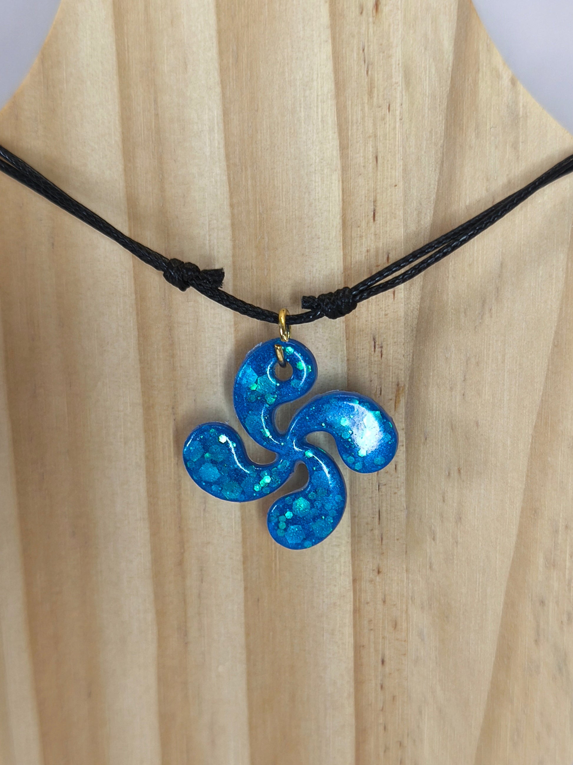 Porté au cou, le pendentif bleu à paillettes reflète la vivacité et l’éclat intemporel de Garazi