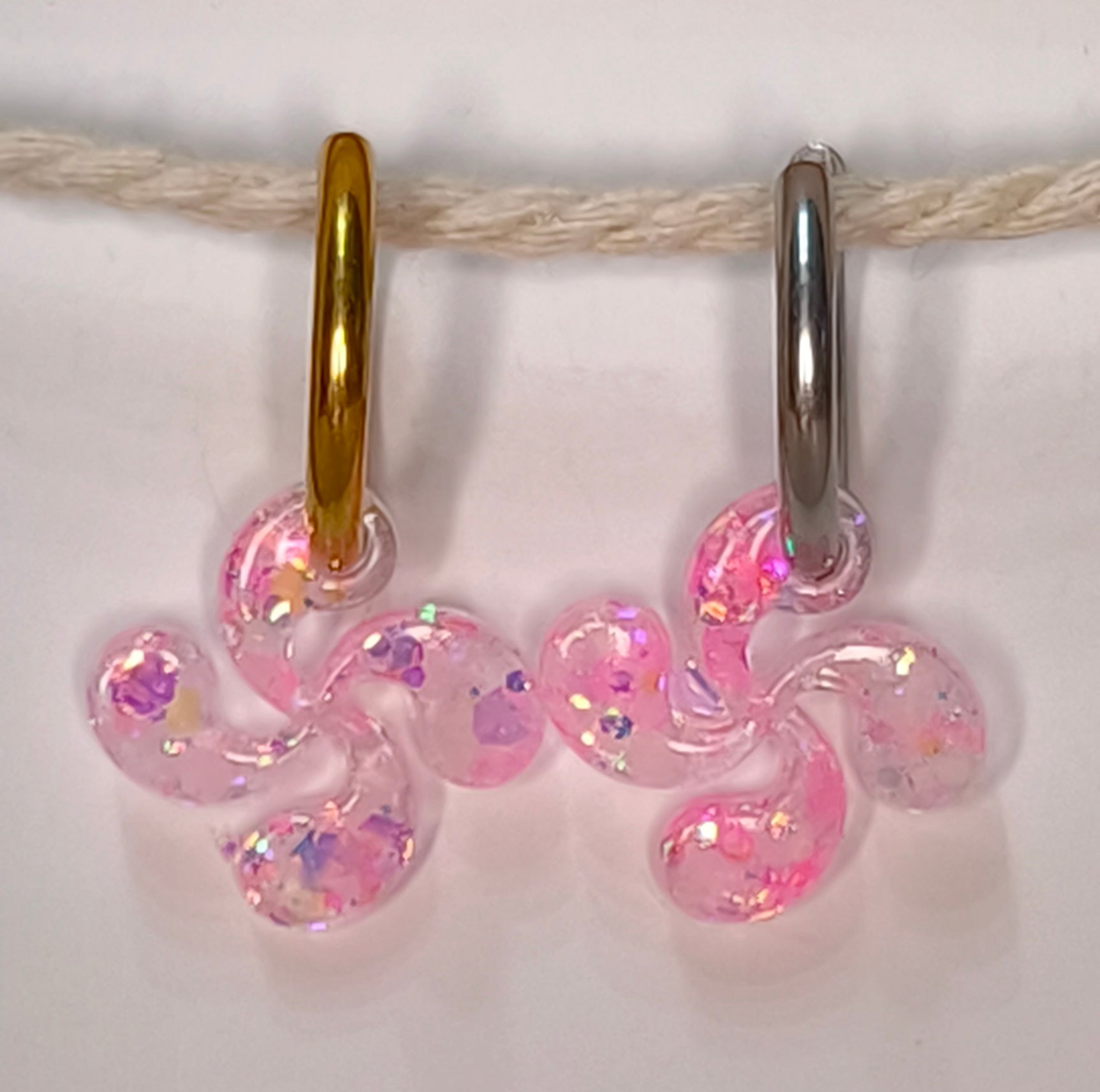Croix Basque transparentes avec des paillettes luminescentes roses