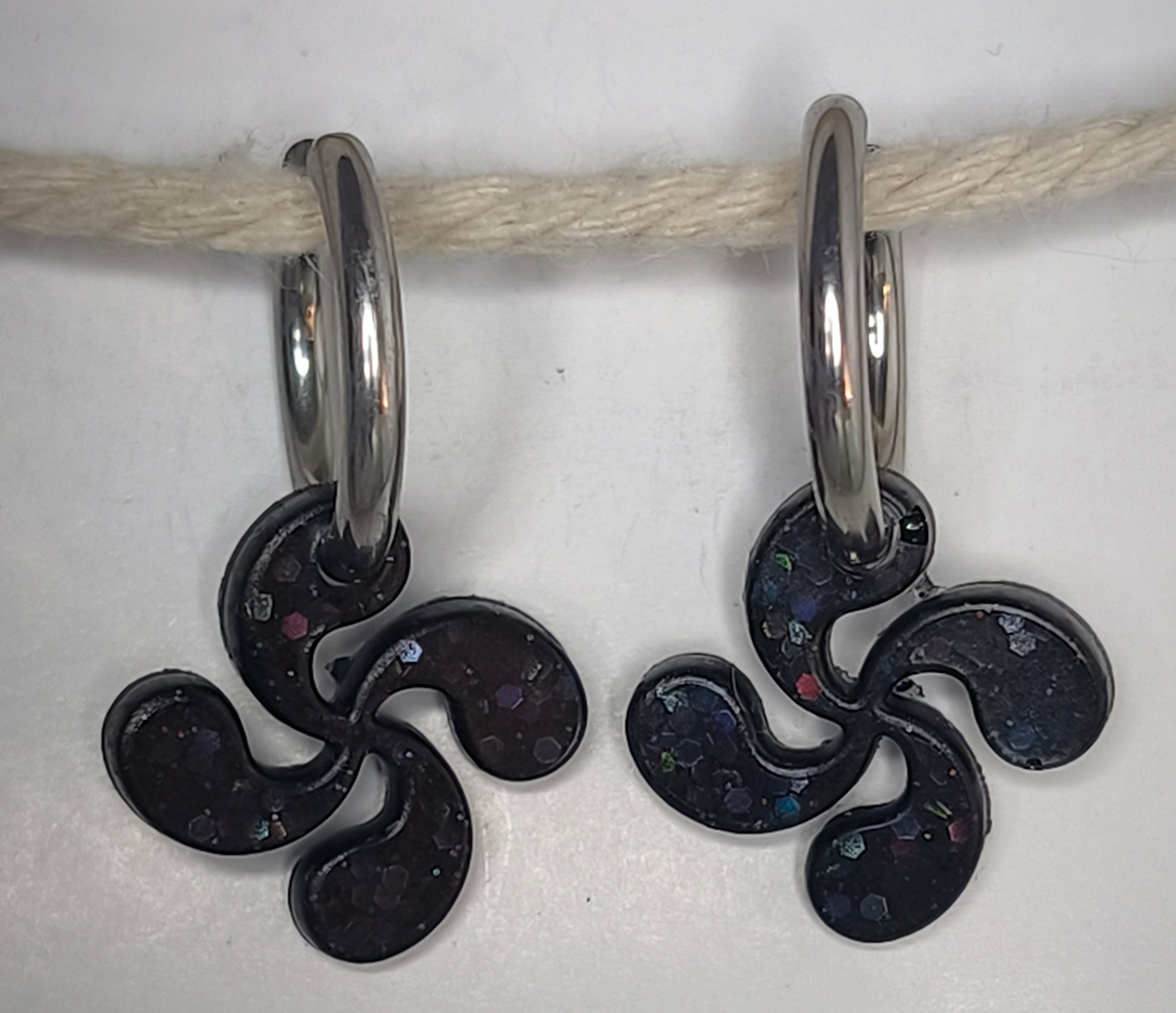 La croix basque en noir à paillettes mêle tradition et éclat moderne, un symbole intemporel et chic