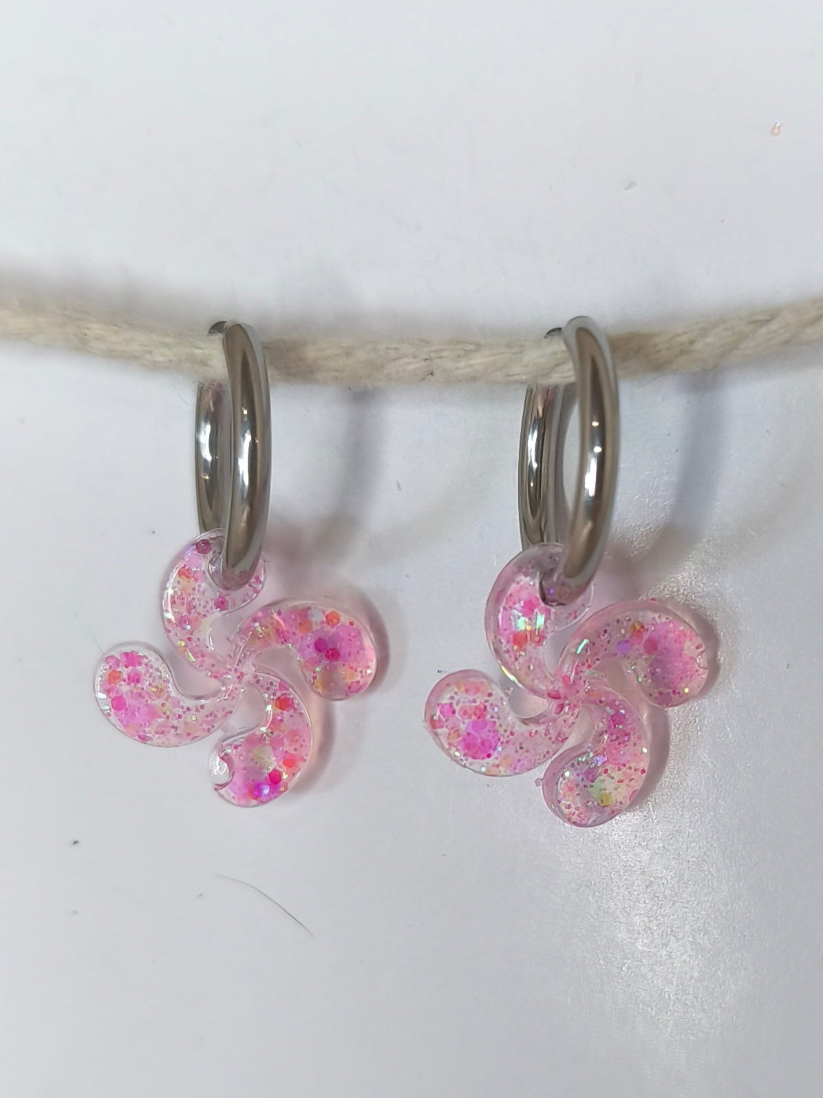La Croix Basque rose clair et foncé à paillettes qui capte la lumière, symbole de tradition