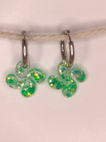 La Croix Basque transparente avec paillettes vertes, symbole de tradition et d’élan de vie basque.