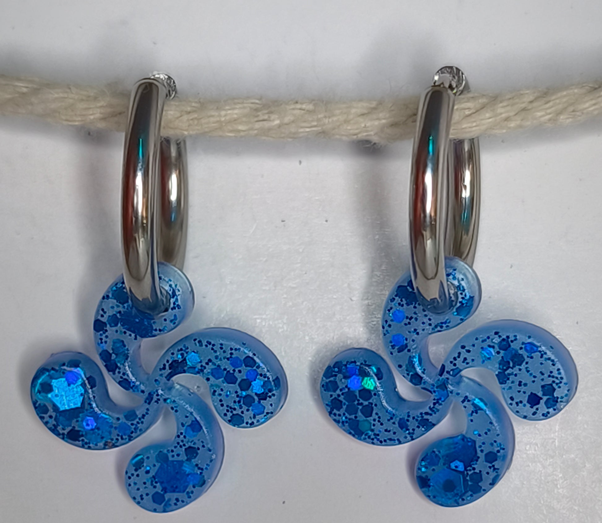 La croix basque scintille en bleu, symbole fort des traditions de Ciboure réinterprété avec modernité