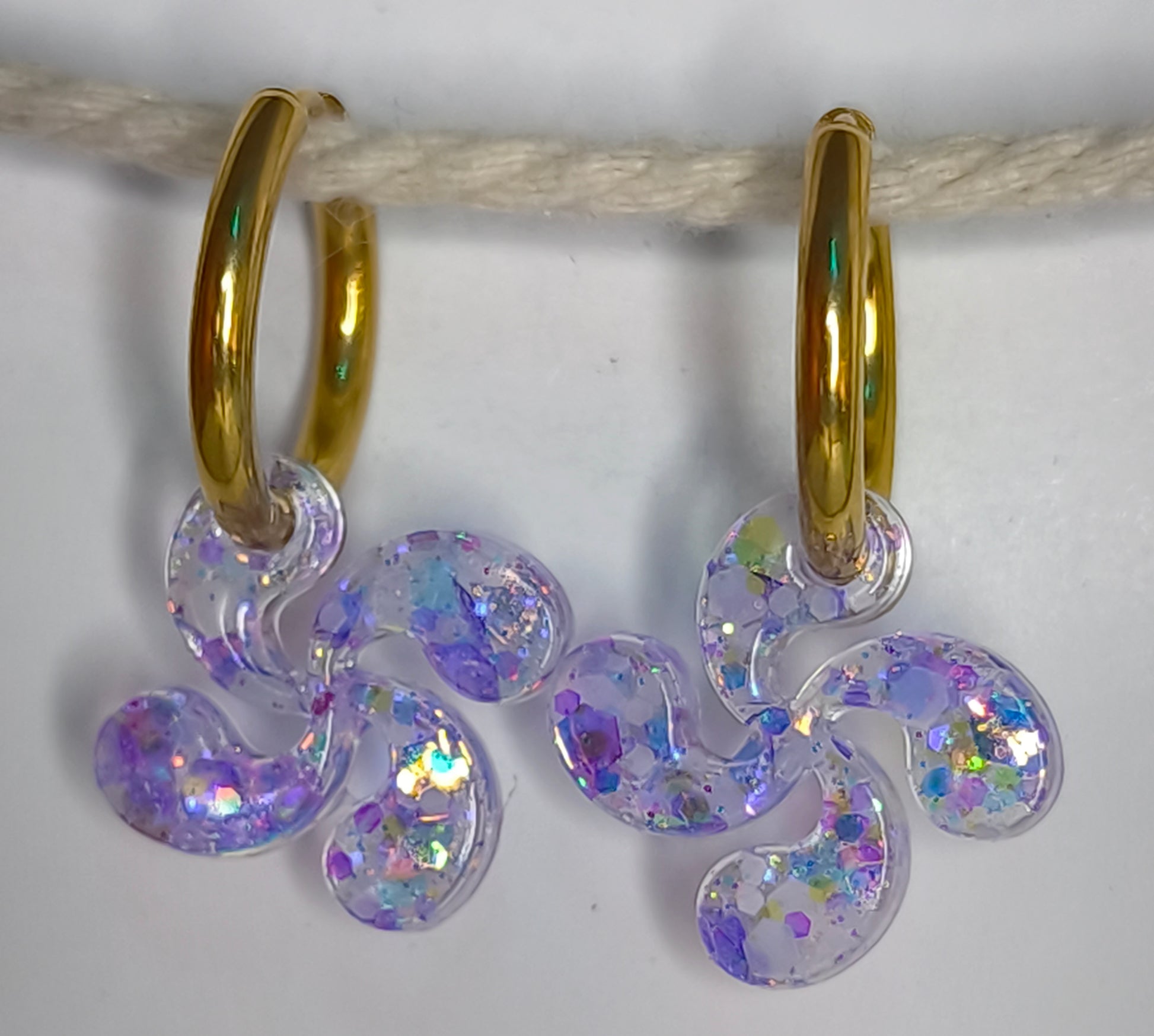 La croix basque scintille en bleu-violet phosphorescent, symbole des traditions illuminées par la magie nocturne de Lasse