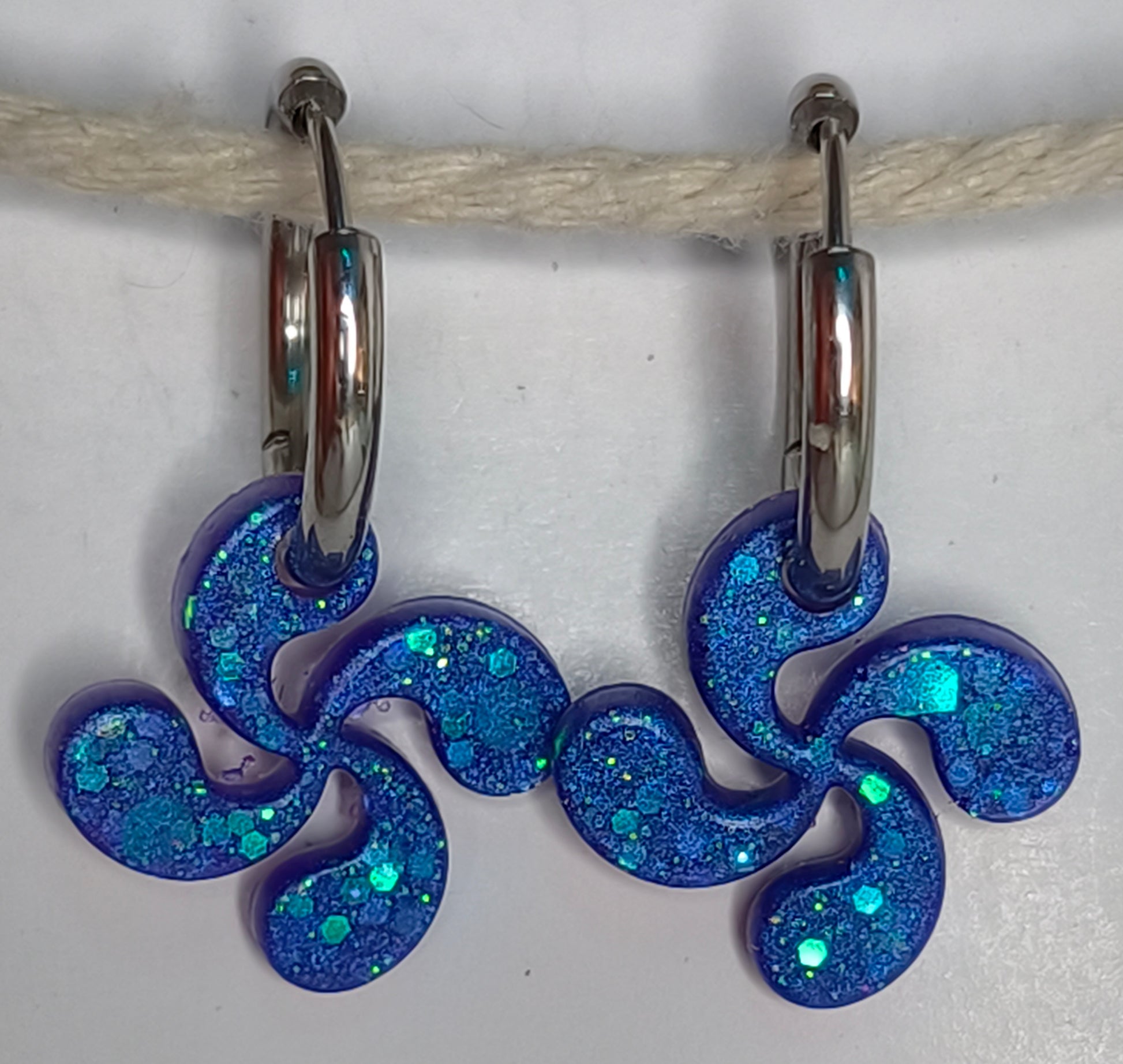 La croix basque scintille en bleu pailleté, hommage discret aux traditions labourdines de Louhossoa