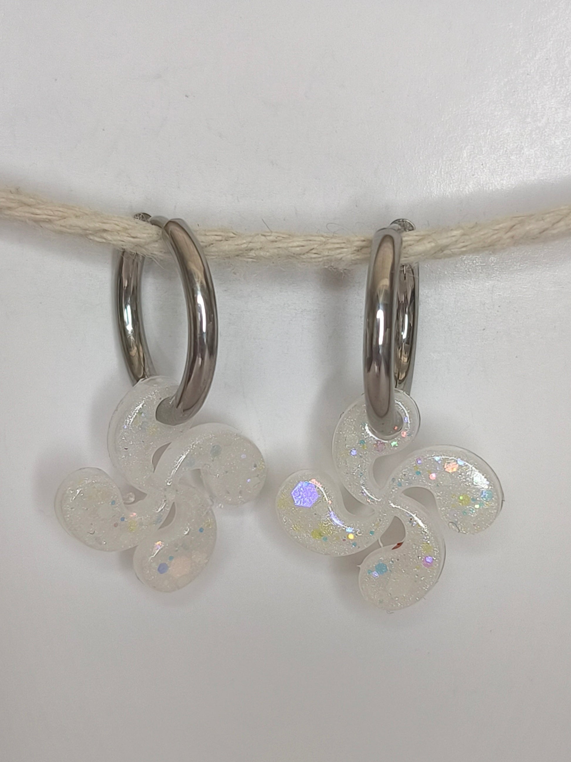La croix basque blanche à paillettes irisées associe tradition et éclat délicat