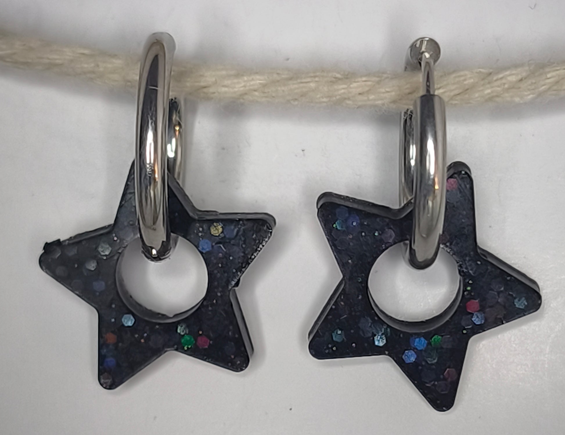 Les étoiles en noir à paillettes étincellent comme de petites lueurs sur les toits du village au crépuscule