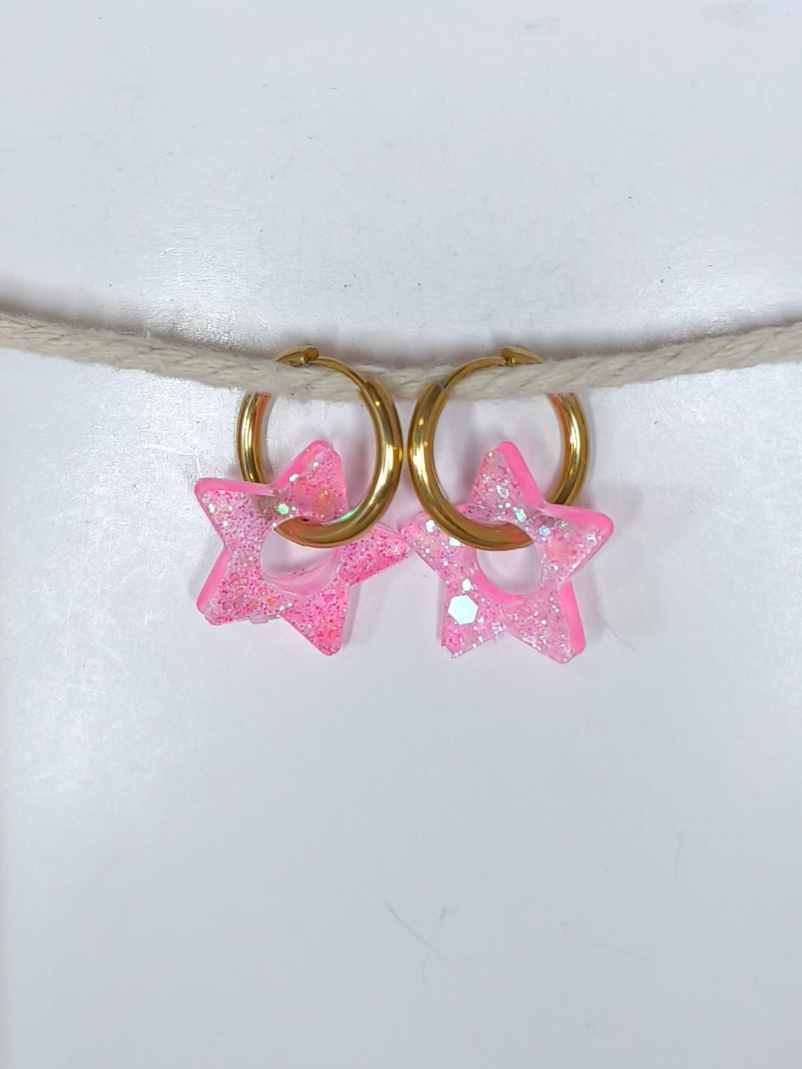 Des étoiles roses à paillettes qui scintillent avec chaleur et tendresse, rappelant de précieux souvenirs