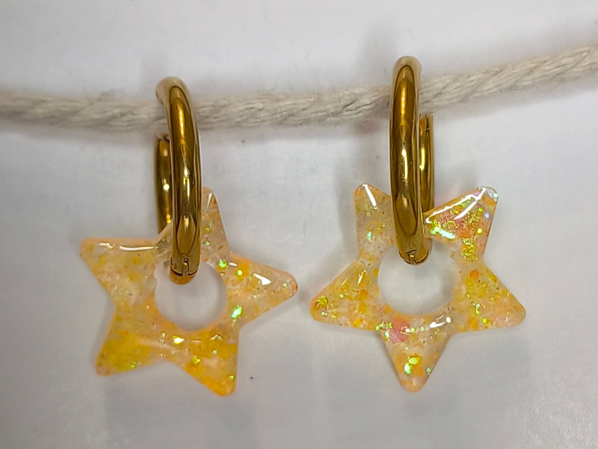 Des étoiles orange phosphorescentes scintillantes qui brillent avec éclat et vitalité