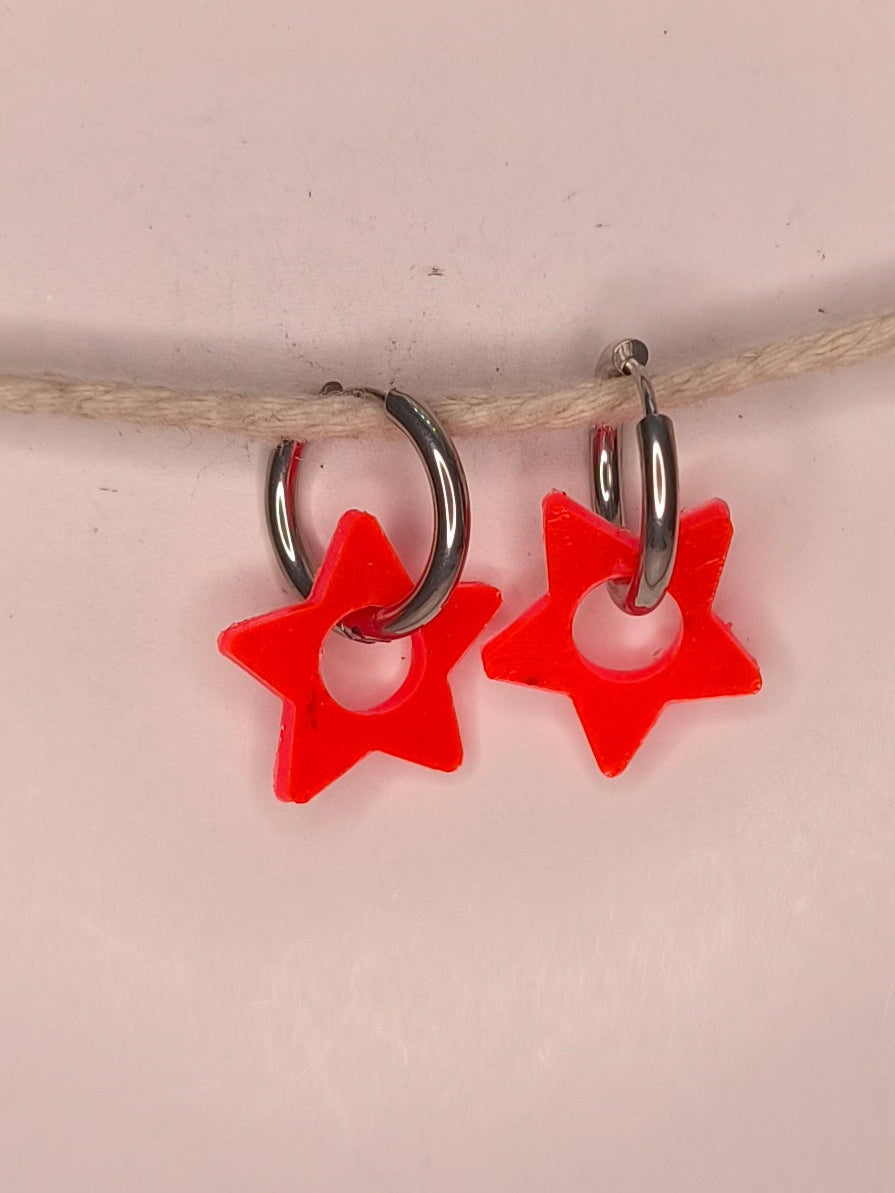 Des étoiles rouge néon qui scintillent avec énergie, évoquant le feu du soleil basque à l’aube