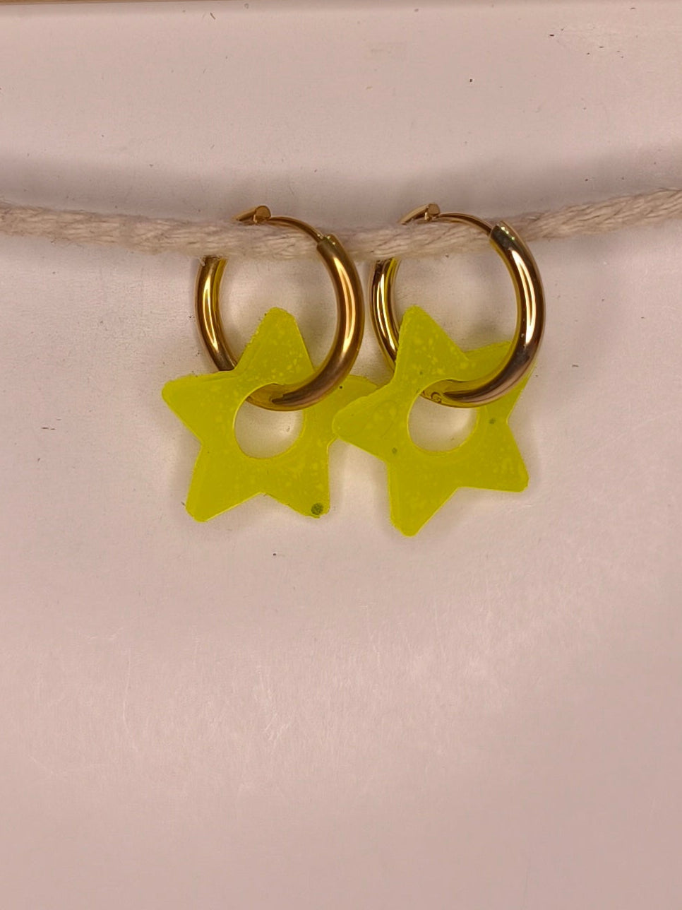 Des étoiles néon jaune qui scintillent avec audace, rappelant la lumière vive du matin basque