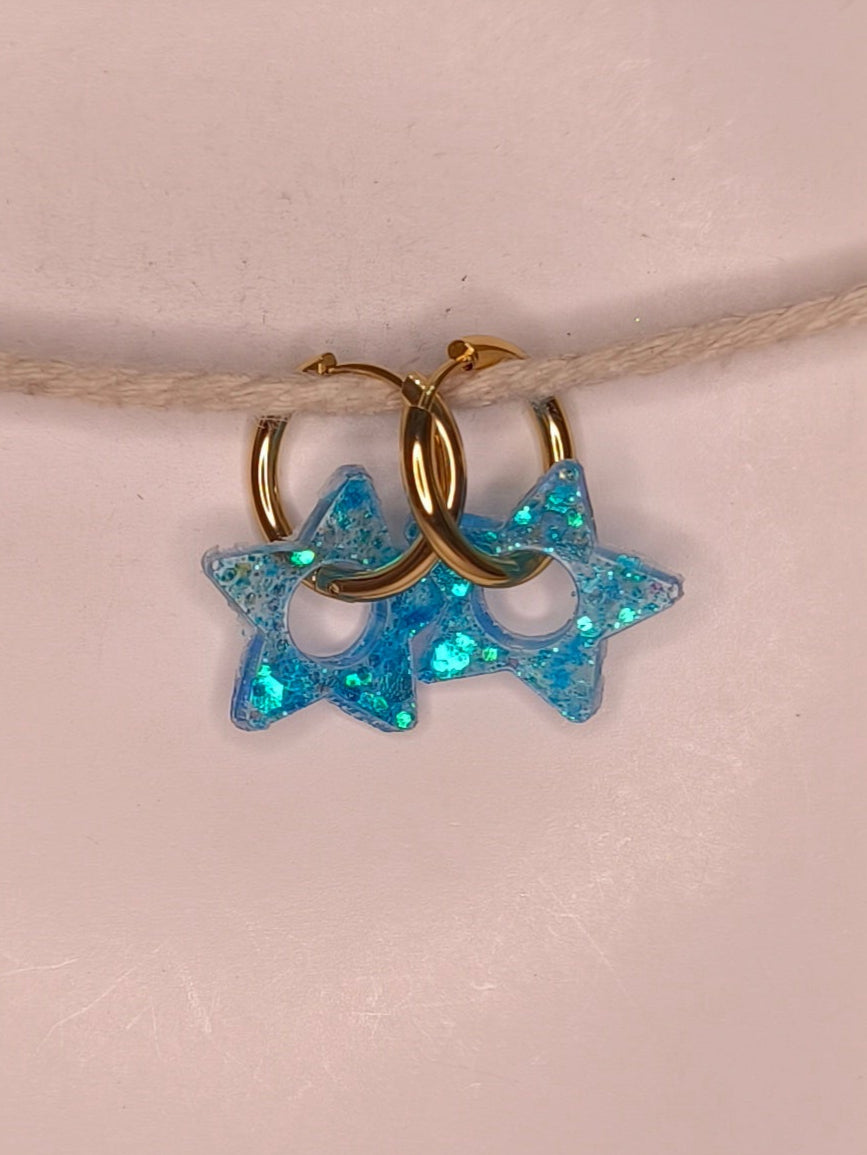 Des étoiles bleu océan à paillettes qui scintillent, rappelant les éclats du ciel et de l’eau au crépuscule