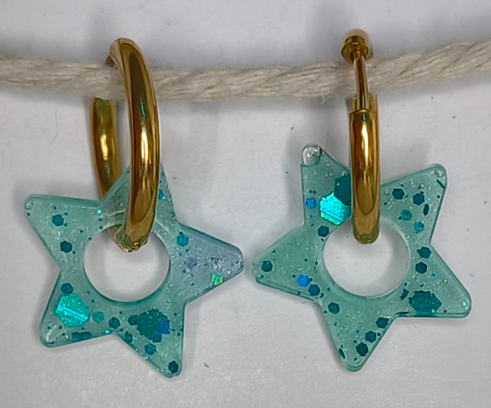 Sous le ciel d’Aincille, les étoiles scintillent dans la nuit paisible. Ces pampilles turquoise pailletées en capturent l’éclat pour illuminer vos instants