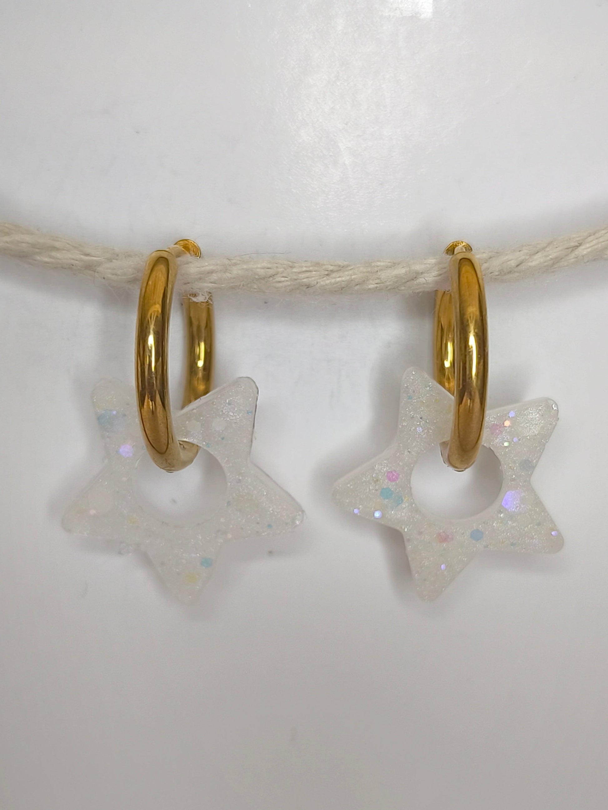 Étoiles blanches à paillettes, éclats délicats suspendus dans la nuit