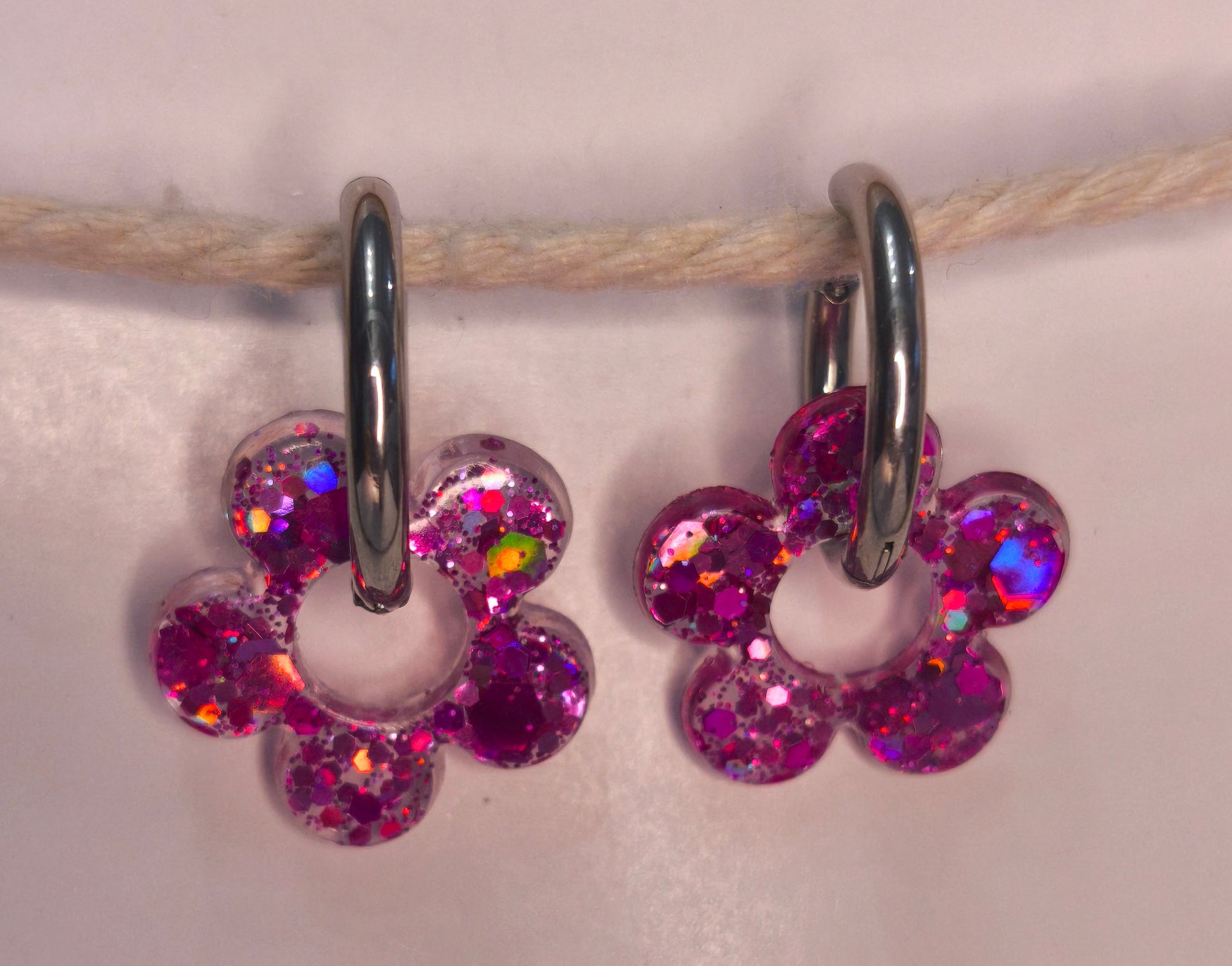 Des fleurs prune à paillettes, délicates et scintillantes comme les pétales sous la lumière douce d’Arrosa