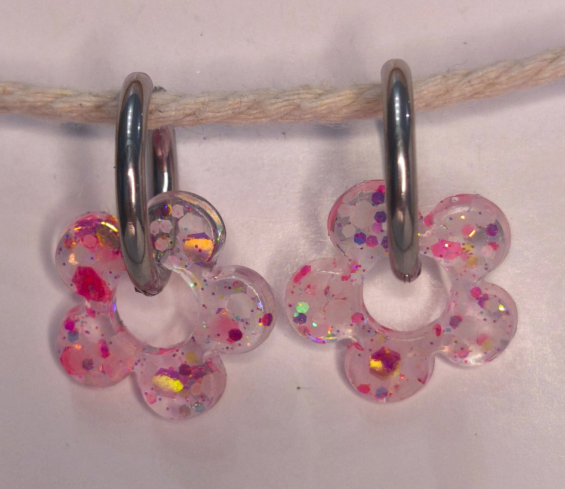 Des fleurs aux paillettes rose-rouge phosphorescentes, pétillantes et lumineuses comme les jardins d’Anhaux au coucher du soleil
