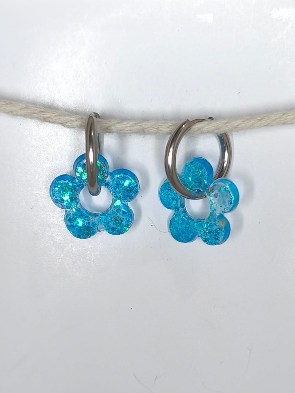 Des fleurs bleu océan à paillettes, délicates et lumineuses, comme des pétales flottant au bord de la rivière