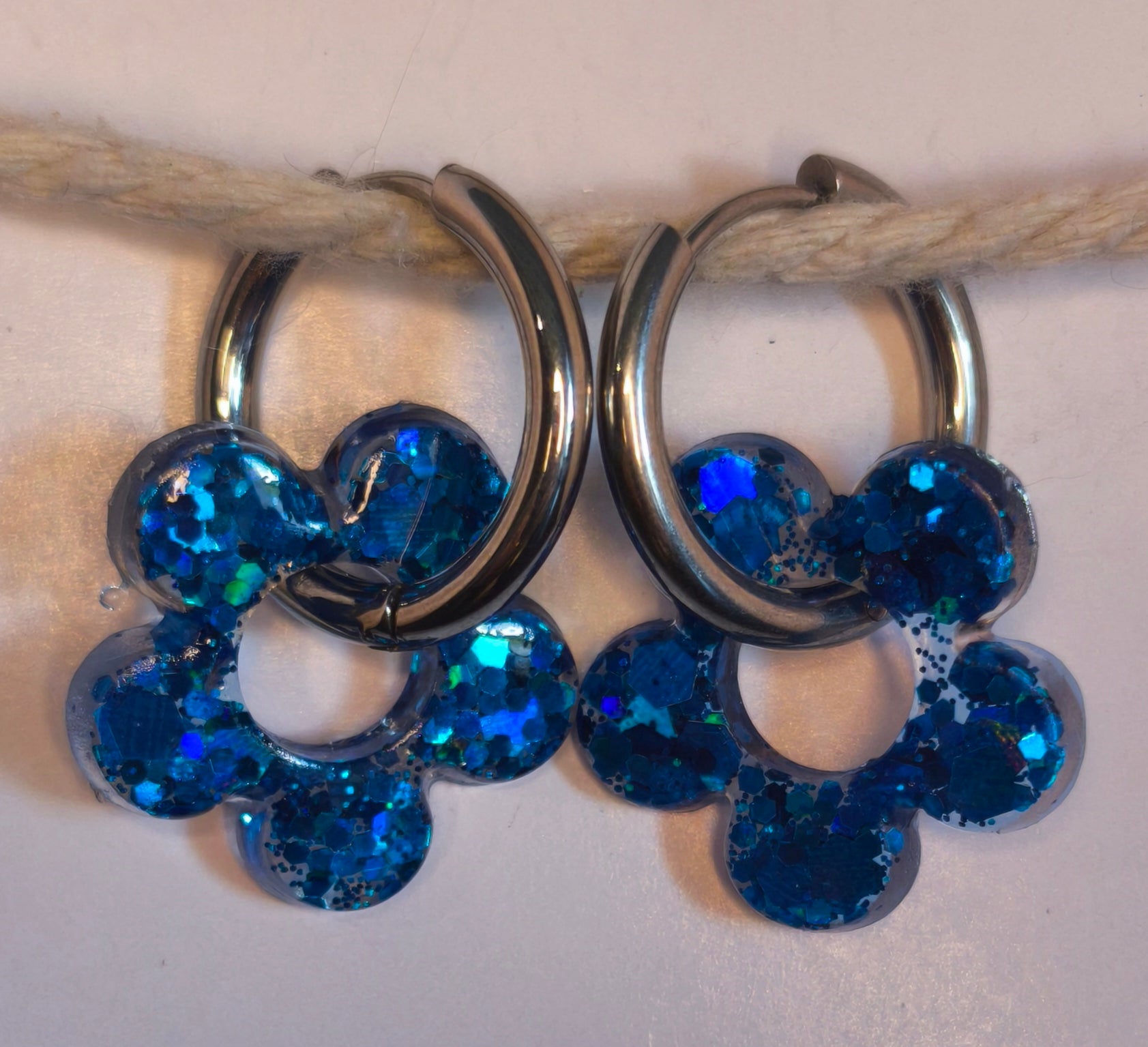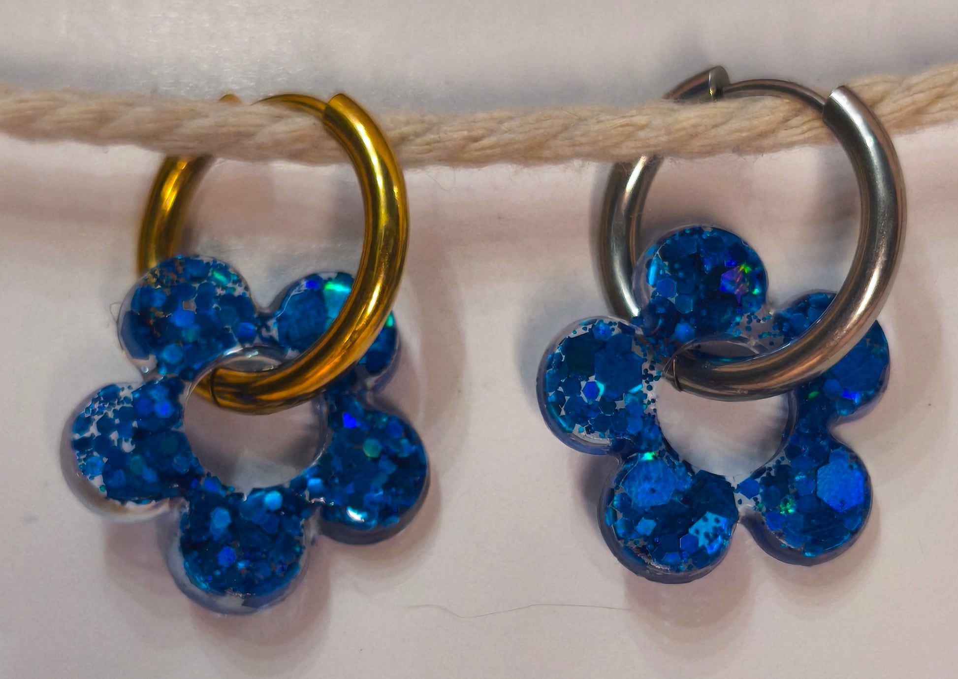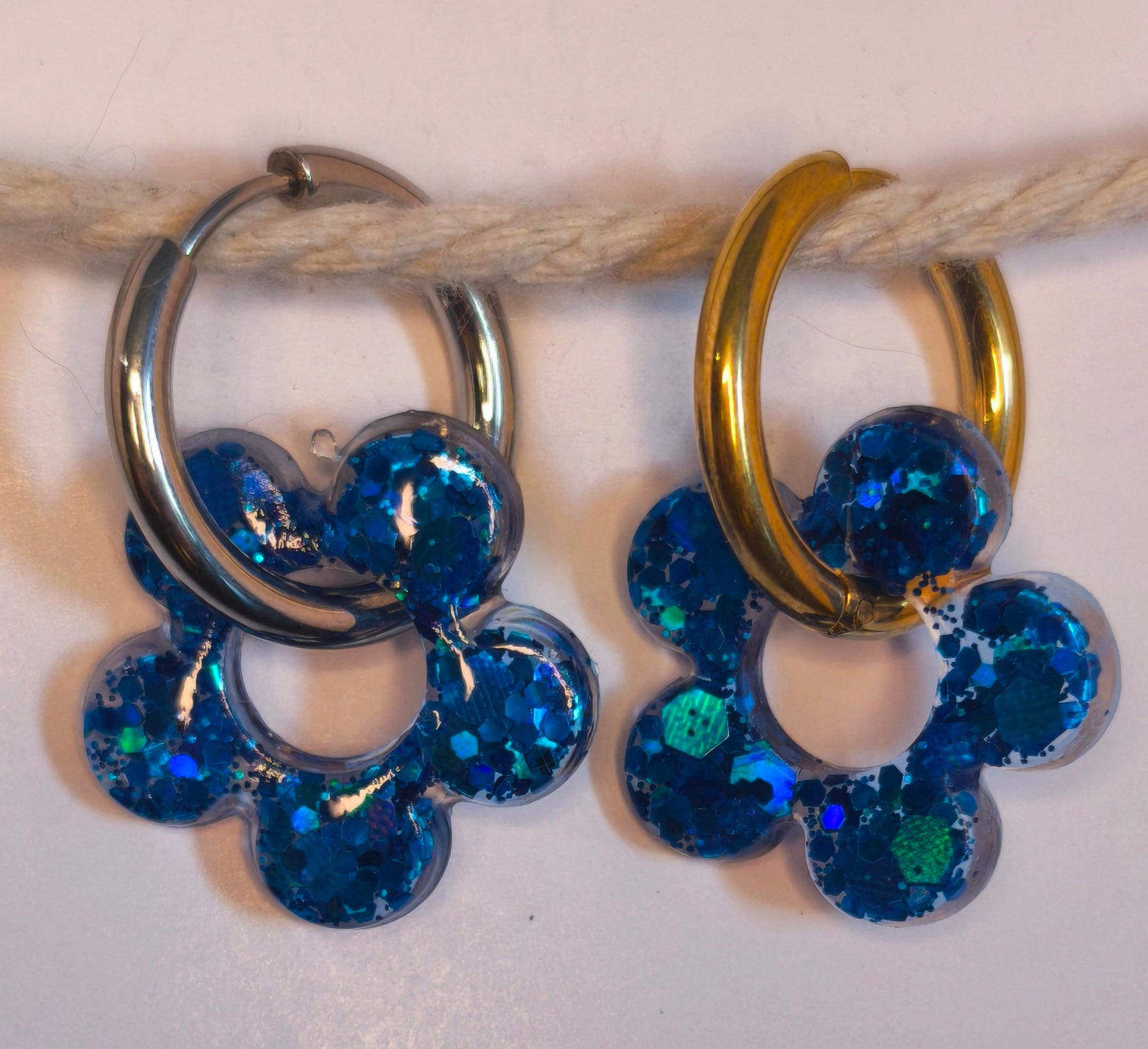 Des fleurs bleu foncé parsemées de paillettes, symboles de l’amour tendre et précieux que j’ai pour ma fille