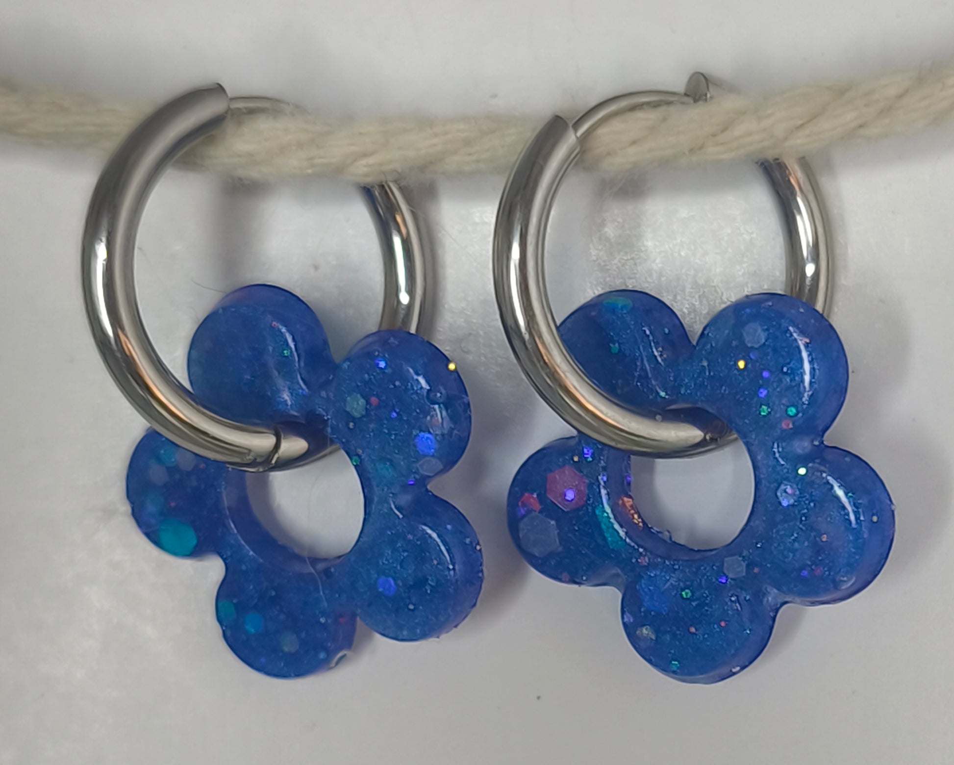 Les fleurs en bleu foncé à paillettes s’épanouissent avec délicatesse et poésie