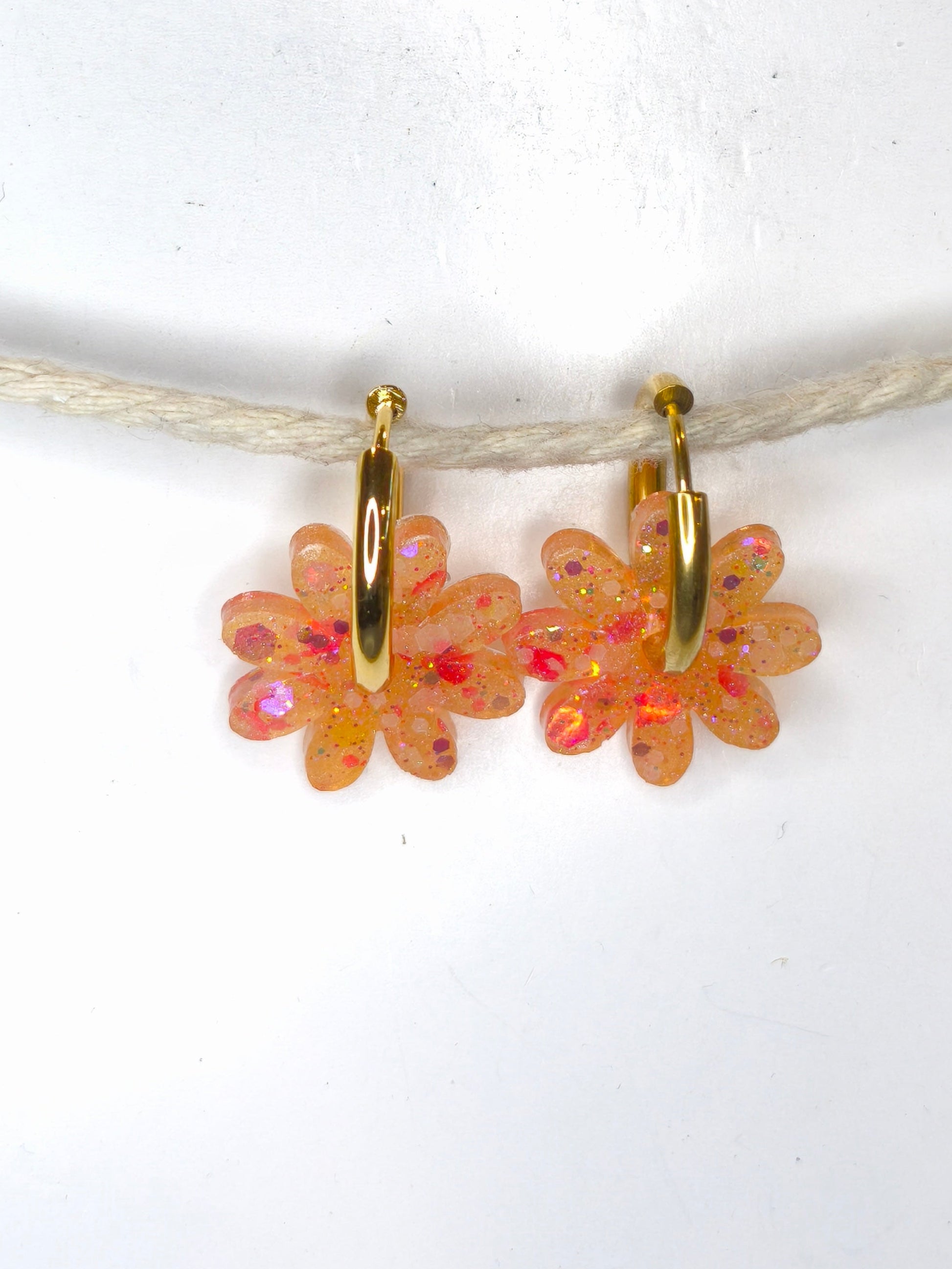 Des marguerites vibrantes, en orange foncé irisé rehaussé de paillettes fines pour un éclat subtil et élégant.