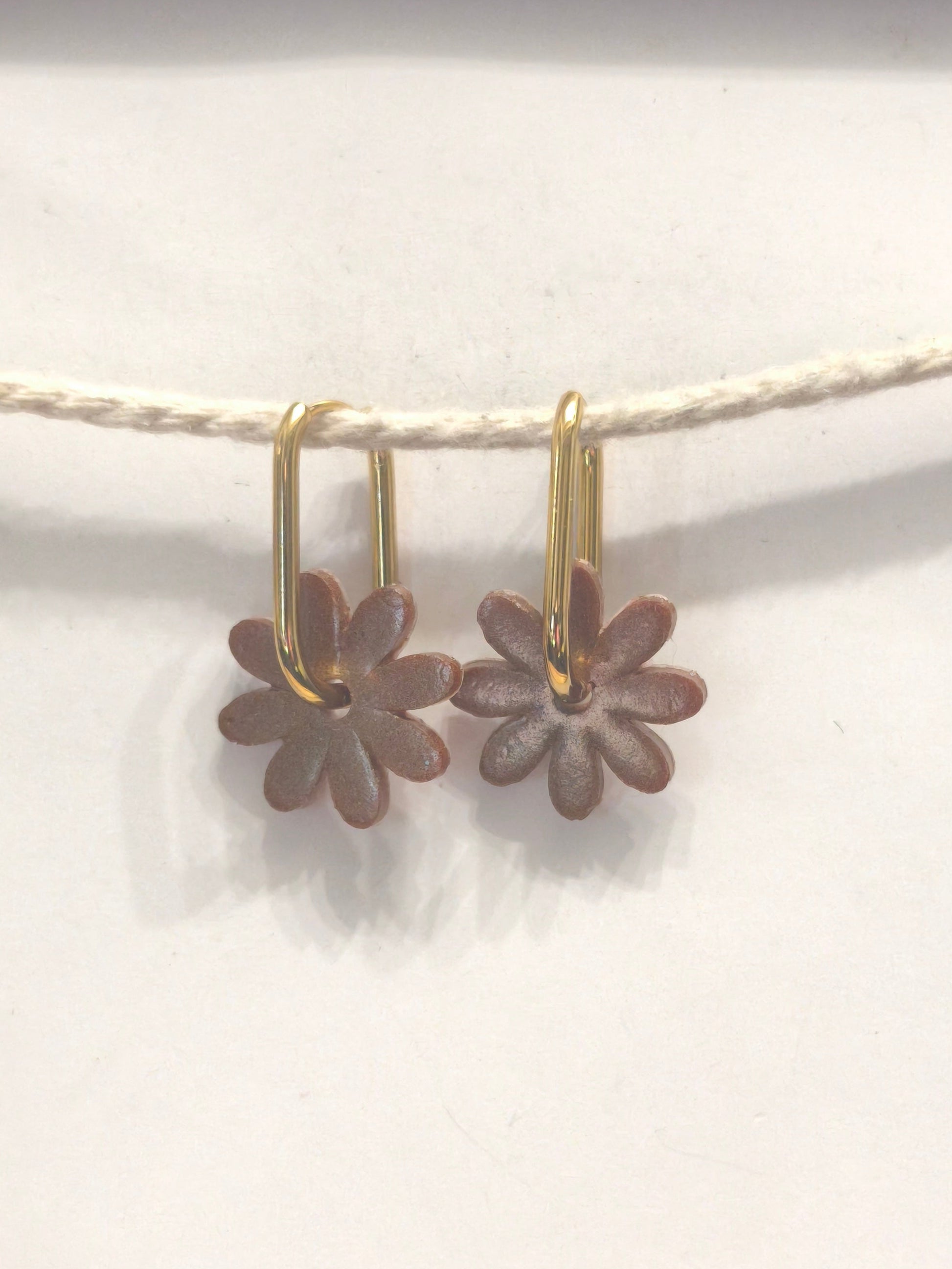 Des marguerites délicates, dans un marron naturel qui évoque la terre basque et ses prairies réchauffées par le soleil.
